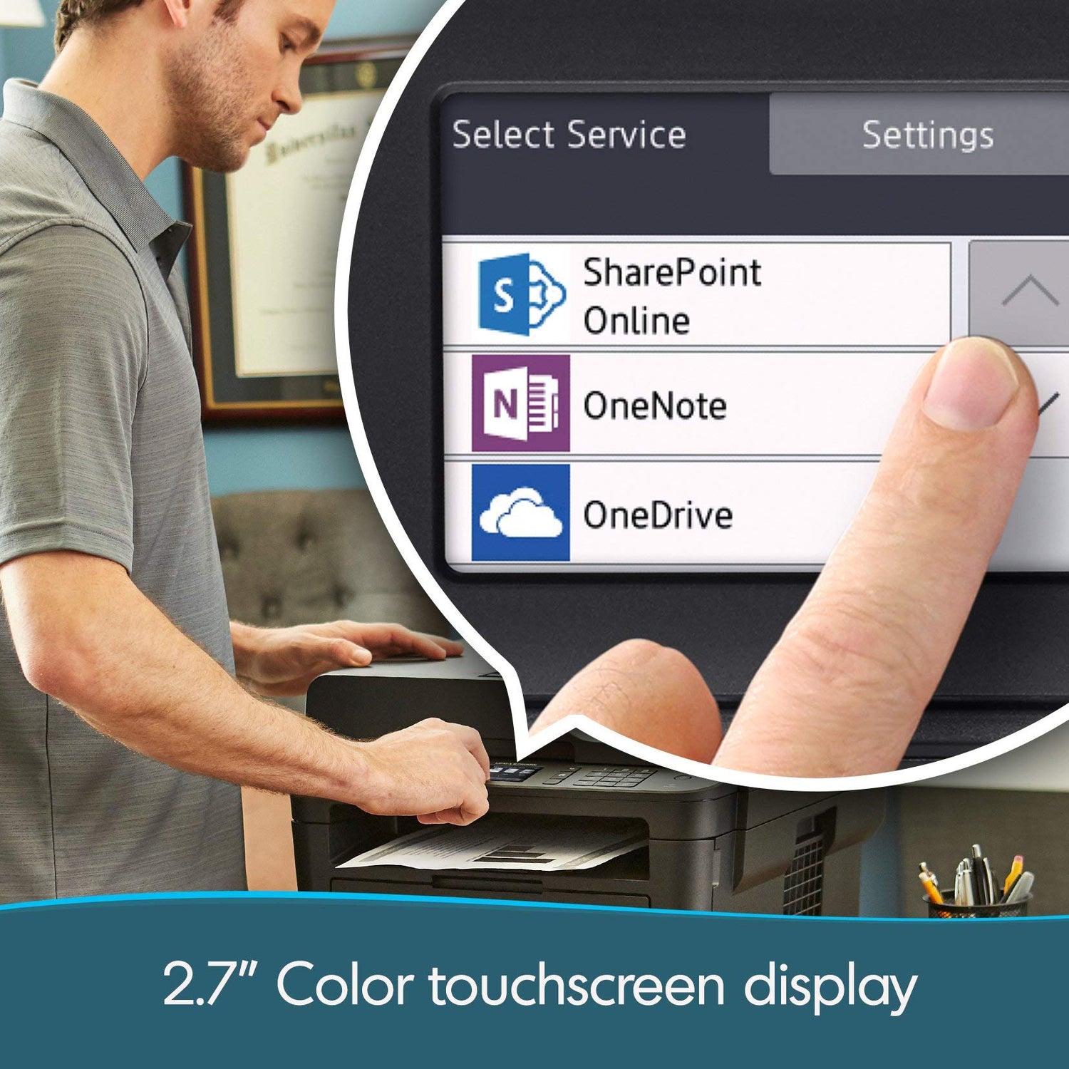 Engineered for increased efficiency with class leading class print speeds of up to 36 pages per minute. The 250-sheet paper capacity helps improve efficiency with less refills and the manual feed slot offers professional prints on a variety of papers and sizes, such as card stock, envelopes, etc. Helps save time with single-pass duplex copying and scanning via up to 50-sheet automatic document feeder, offering multi-page copy, scan and fax. Printing as mobile as you are: print wirelessly from your desktop, laptop, smartphone and tablet; "touch to connect" printing with NFC delivers added convenience. Print-from and scan-to popular cloud services directly from the 2.7" color touchscreen including Dropbox, Google Drive, Evernote, OneNote and more; help save time by creating custom shortcuts right on the touchscreen for your most used features. Created to streamline your document workflow: using the touchscreen, access Brother Cloud Apps: a free suite of innovative, cloud-based applications designed to meet your changing needs, including Scan to Office, which converts a hard copy document into an editable file - Word, Excel, or PowerPoint. Automatic duplex printing helps save on paper costs.