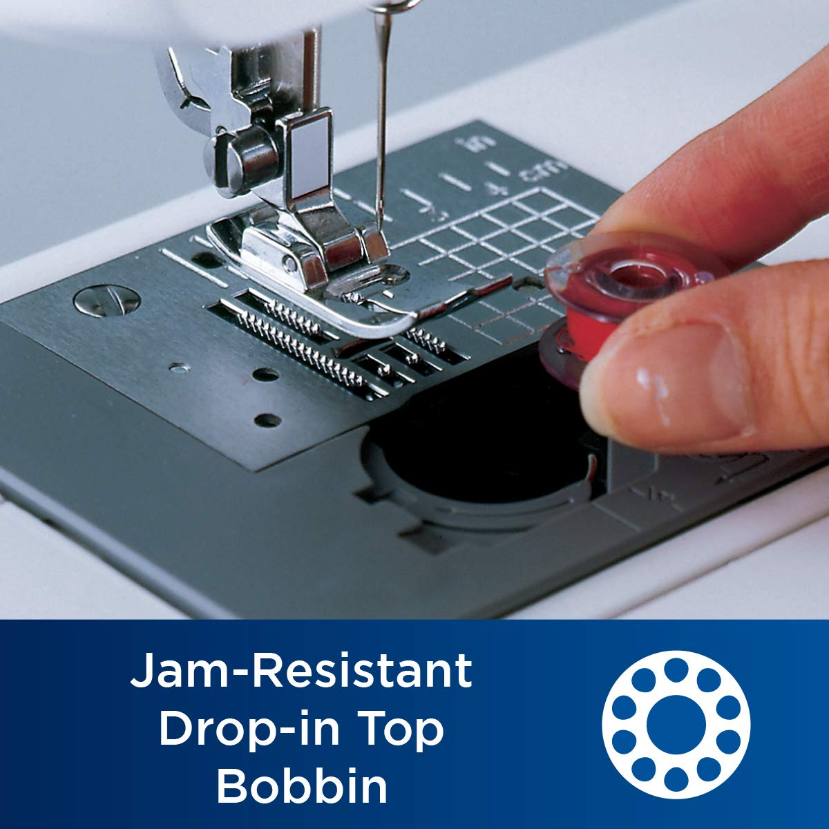 - AUTOMATIC NEEDLE THREADER AND DROP-IN TOP BOBBIN: This sewing and quilting machine includes an automatic needle threader that perfectly pushes the thread through the needle and a convenient, jam resistant drop-in top bobbin