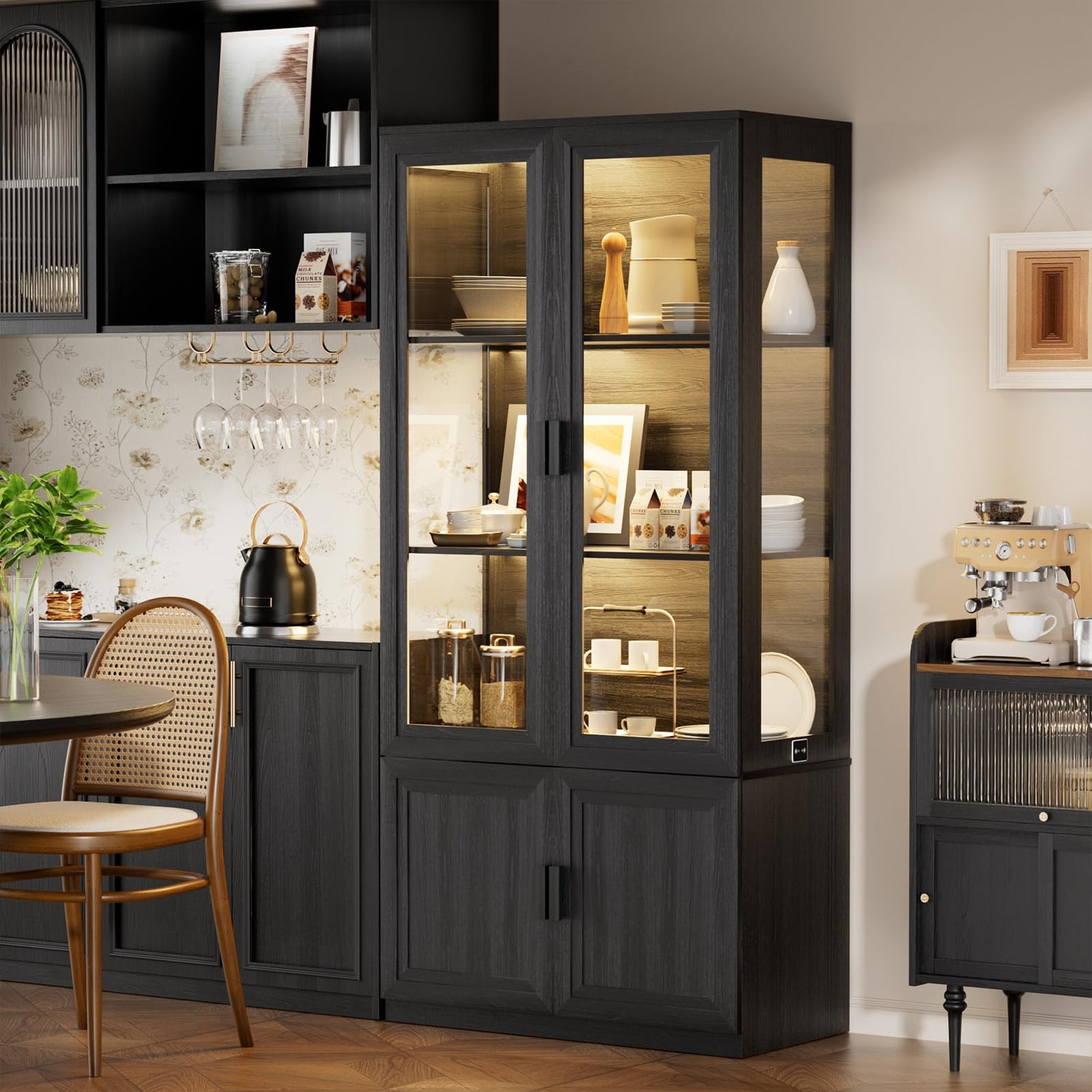 - 【Eye-Catching LED Lighting】Featuring 3 color LED lights with adjustable brightness, this curio cabinet will add a touch of elegance and sophistication to any space in your home.