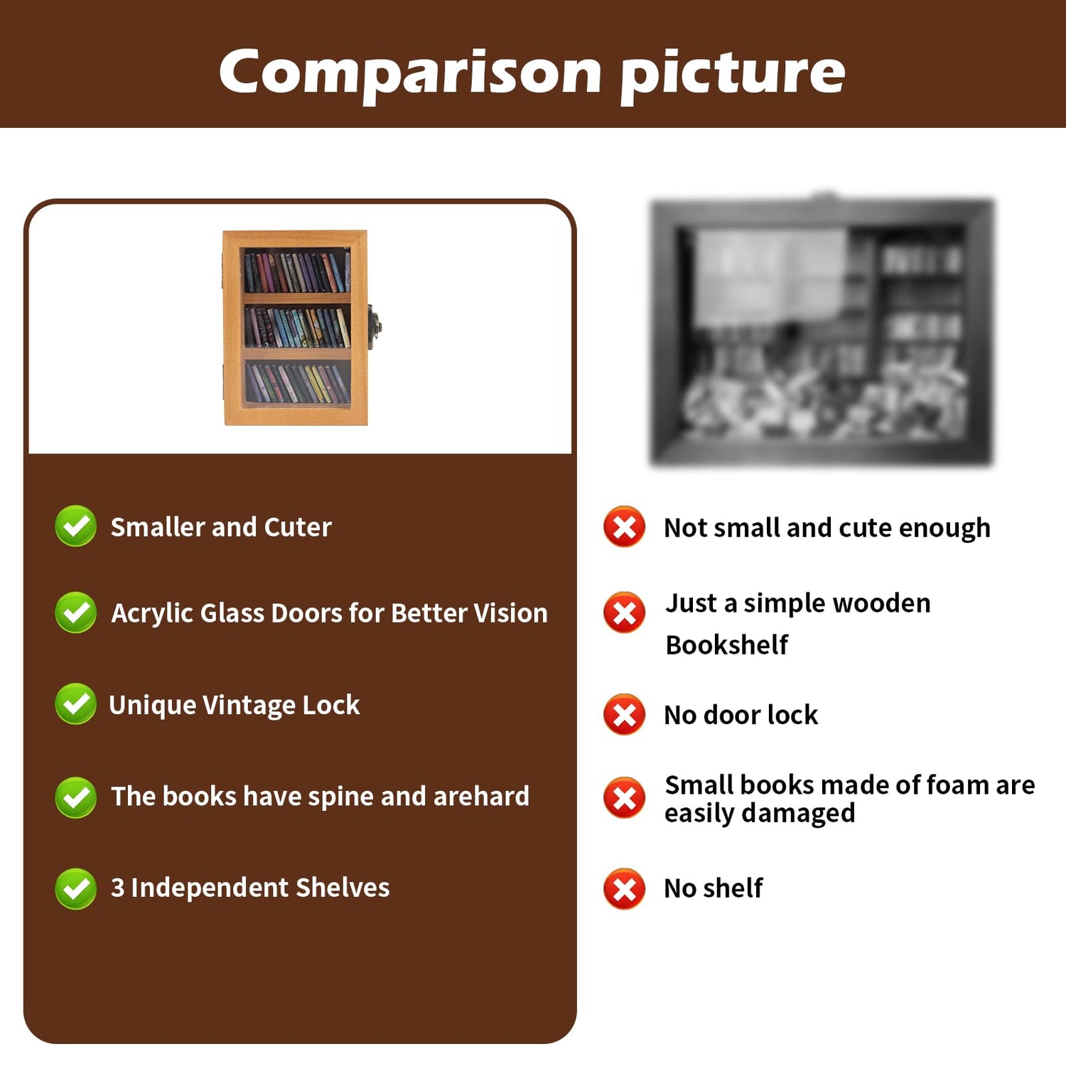 Brown Anxiety Bookshelf,Super Mini Bookshelf,Set:1 Wooden Book Display Case + 60 PCS Mini Books,Shake Away Your Anxiety,Home Study Room Office Bedroom Library Decor,Perfect for Book Lovers