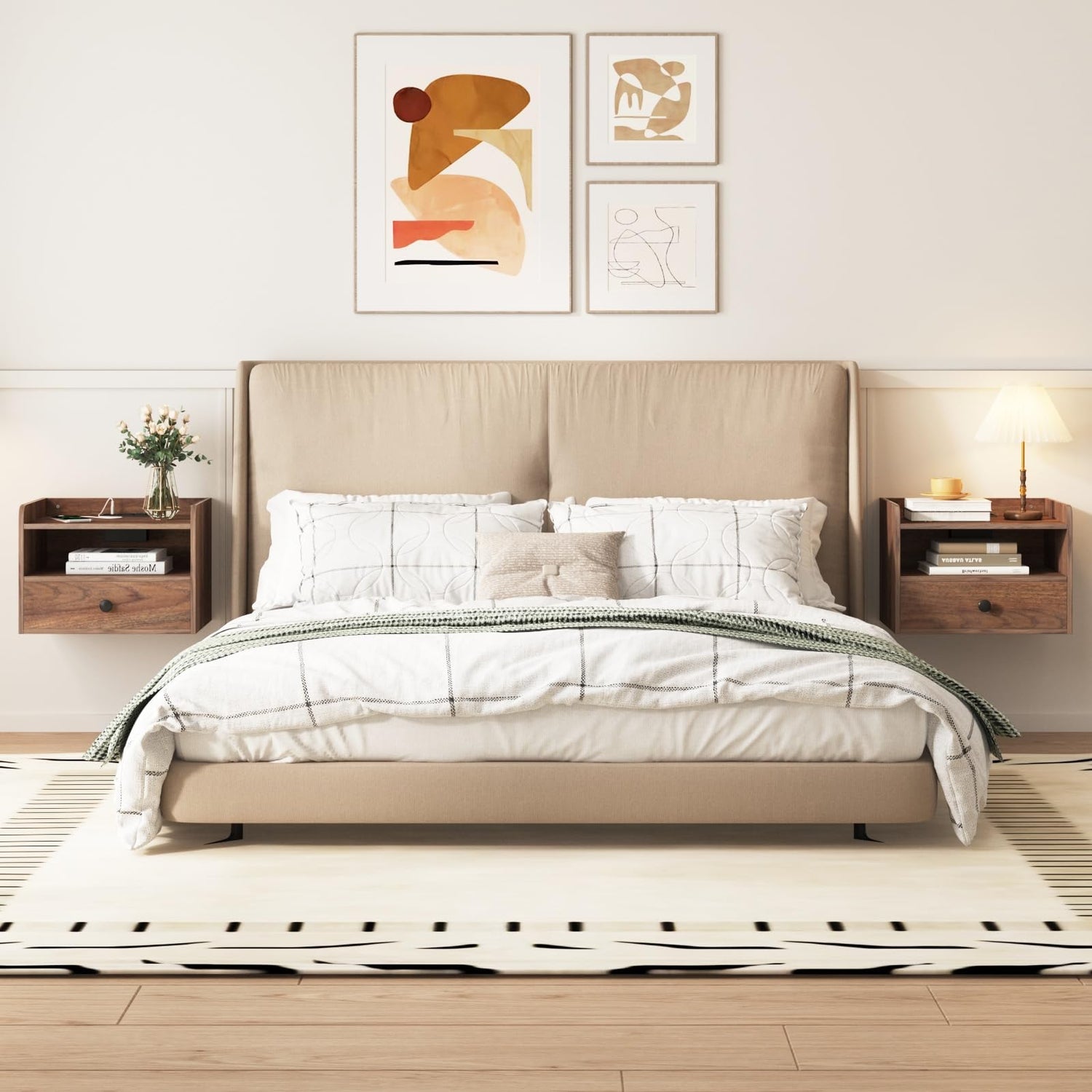 - ☘️With our bundle deal, you'll receive not just one but two floating bedside tables, perfect for a his and hers setup or to place on either side of a larger bed. And with their space-saving design, you'll have more room for other furniture and decor in your bedroom.