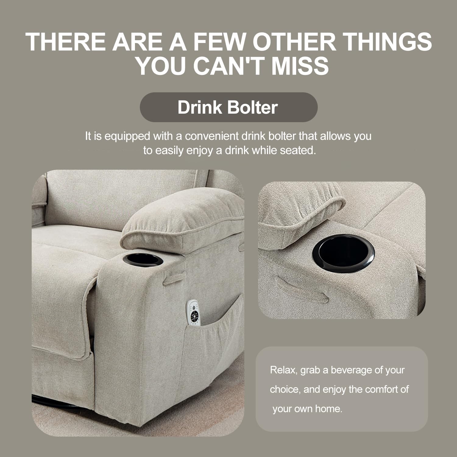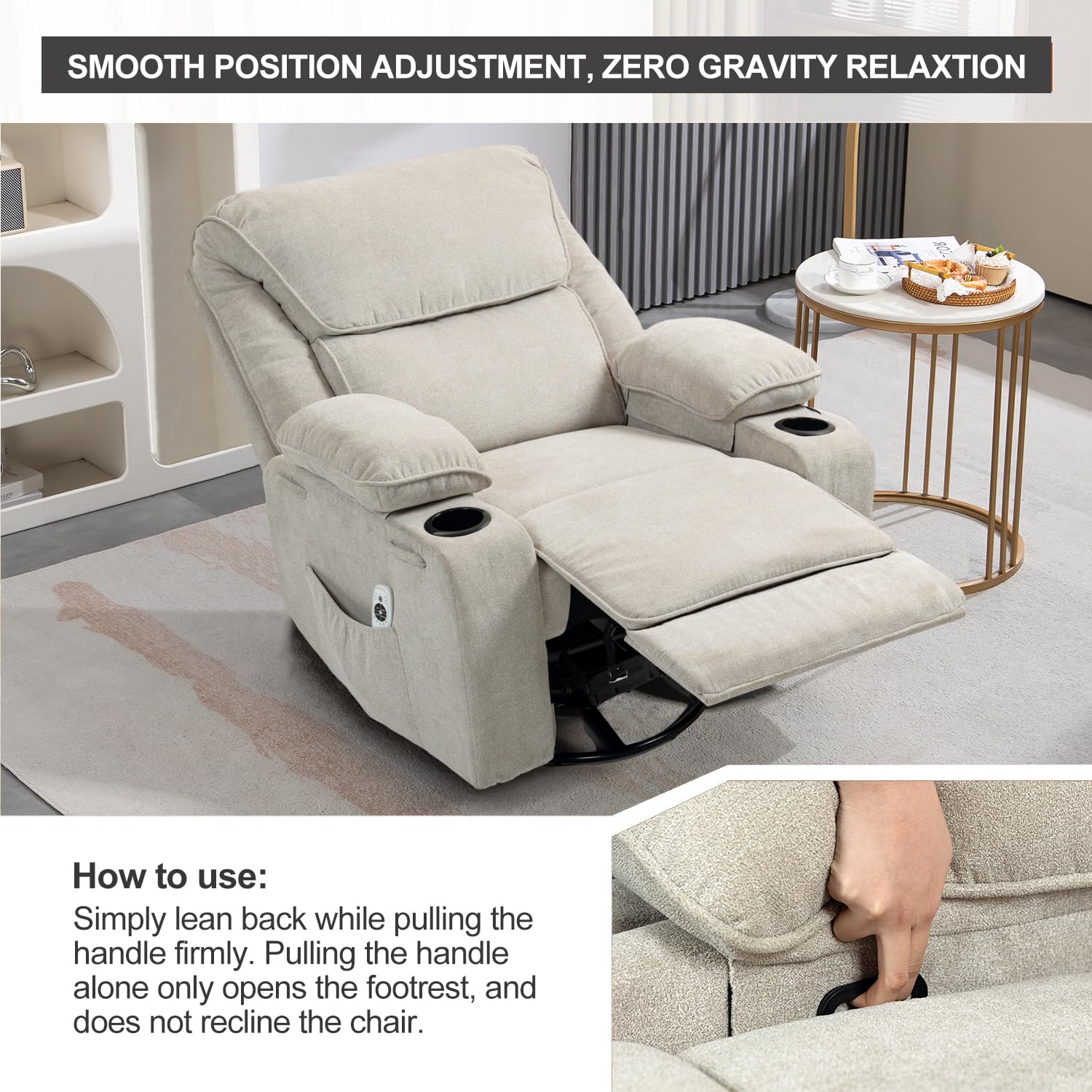 BRTHORY Rocker Recliner Chair with Massage and Heated, 360°Swivel Rocking Manual Recliner Chairs with Cup Holders Remote Control for Living Room (Gray Oatmeal)