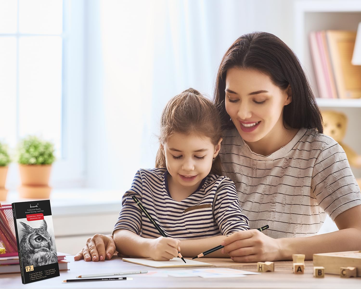 - ENDLESS POSSIBILITIES: Charcoal drawing set will give a fuller expression of your work. Great for sketching, drawing, shading and blending. Very suitable for students, artists, drawing beginners to creations; Great charcoal pencil set of a gift for family