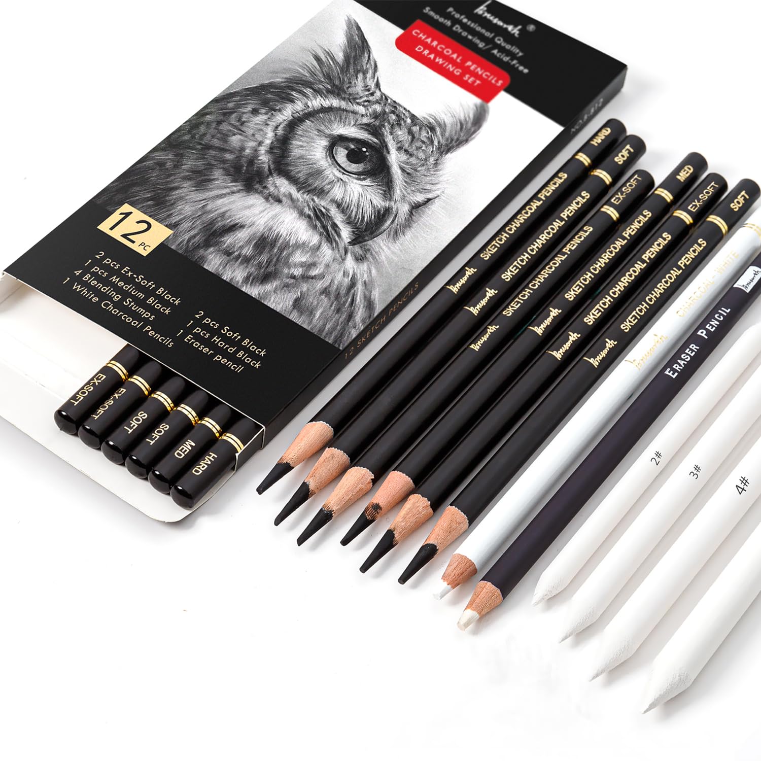 - QUALITY CHARCOAL PENCILS: Charcoal Drawing Kit set for fine and crisp detailing; White charcoal pencil is used for tortillon blending and adding highlights while the dark ones are used for adding the deep black color of 4 grades to your charcoal drawing