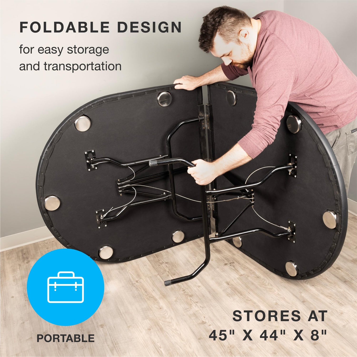 - Foldable Game Table: When not in use, this table can be folded down for easy storage and transportation. The best part is that there is no assembly or tools required. When it is time for your next game, just unfold the table and get ready to play