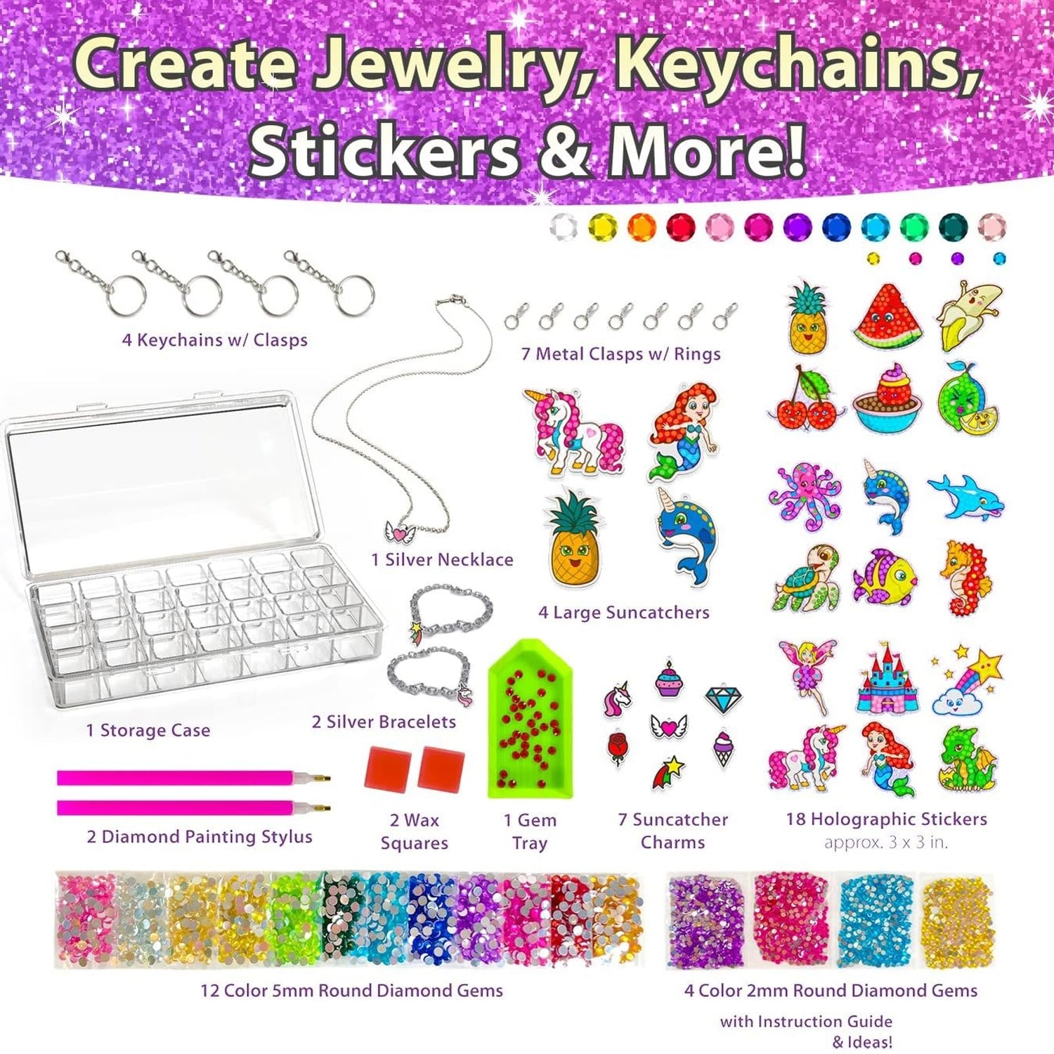 BRYTE Diamond Painting Kits for Kids - Unicorn & Mermaid Crafts with Storage Case, Jewelry, Keychains, Stickers & More - Diamond Art Kits for Kids
