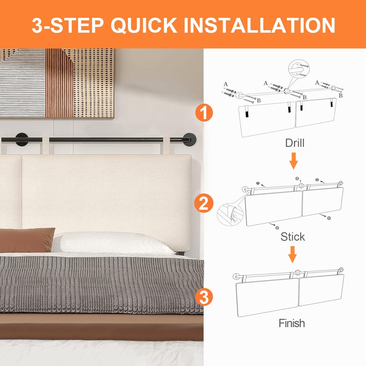 BSHOMGI King Headboard, Wall Mounted Headboards for Bed with Linen Upholstery Hanging Headboard for Bedroom Thanksgiving Day, Christmas for Family(Beige, King)