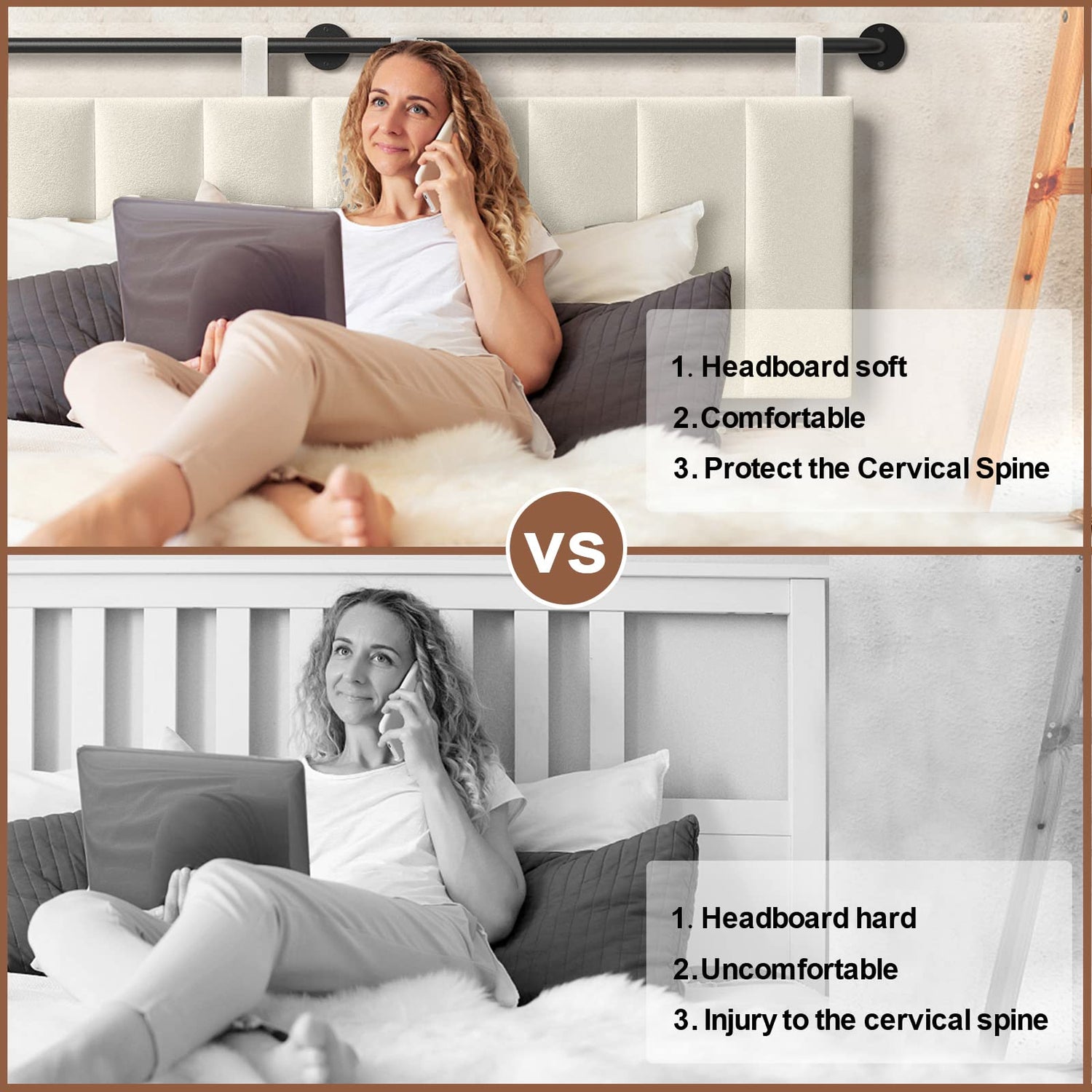 Built for durability, the sturdy solid wood plywood frame provides exceptional toughness and bending resistance, ensuring long-lasting use. The edges are carefully wrapped in soft materials for enhanced safety, and the inclusion of metal rails further enhances stability, allowing you to enjoy your headboard with peace of mind.