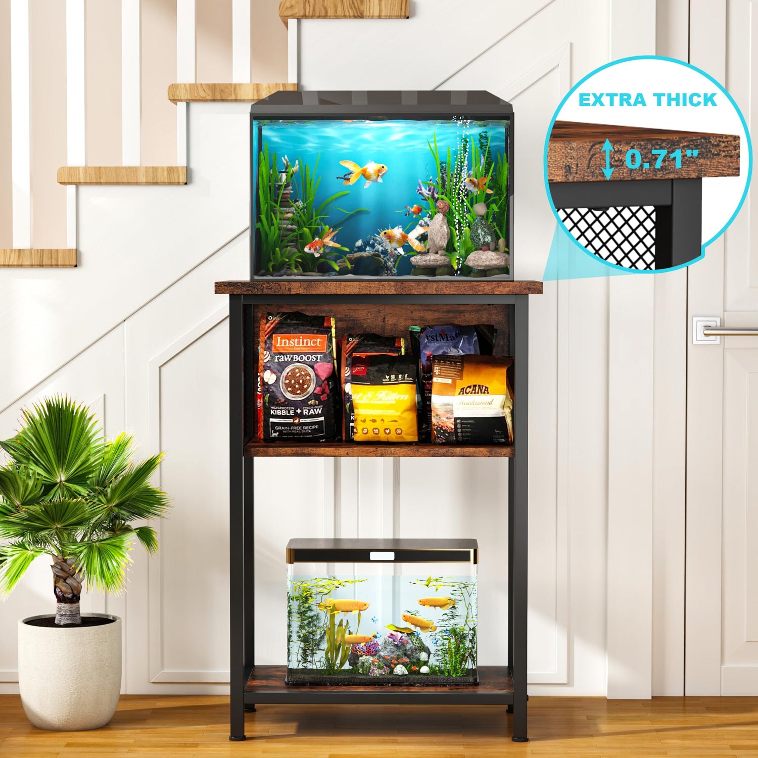 - Upgraded Fish Tank Stand: After researching all the fish tank stands on the market, we have carefully designed this sturdy and durable aquarium stand. The panel is made of 0.71" thick wooden boards, ensuring that the desktop can withstand a weight of 350 pounds