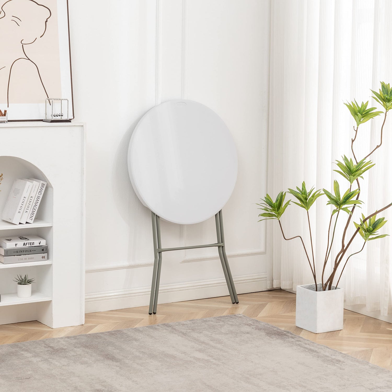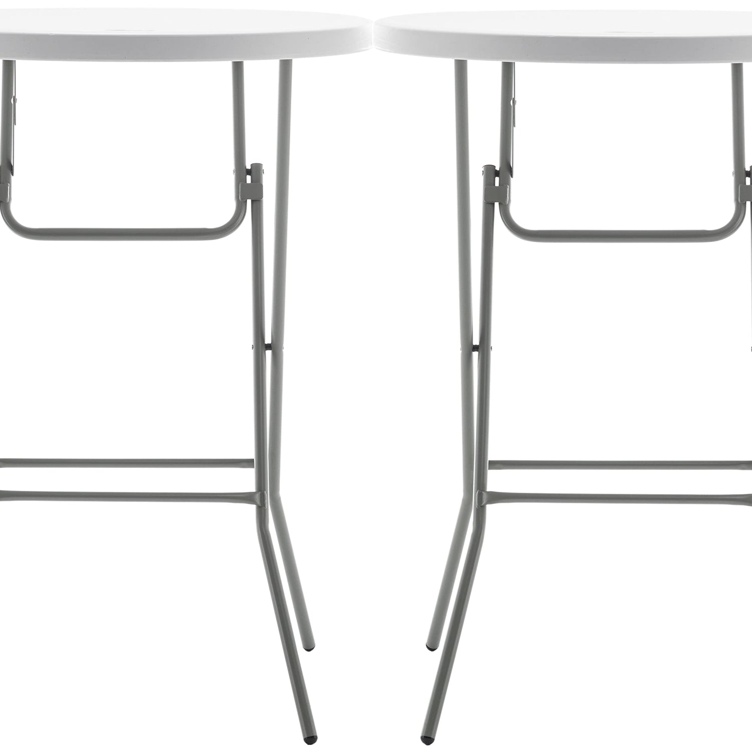 - COMMERCIAL GRADE: Indoor Outdoor belly bars folding table with 32 inches round top perfect for any Hotel, party or socialization, whether you're hosting a backyard cocktail barbecue, or simply need extra seating at your next gathering. Stable enough to put heavy things sitting on top. 2.6-Foot Round Tabletop made from 45mm thick durable plastic this Bar Height Plastic table can seat up to 2-4 adults. The 43.3 inch height design is perfect for standing gatherings or for use as a high-top table.