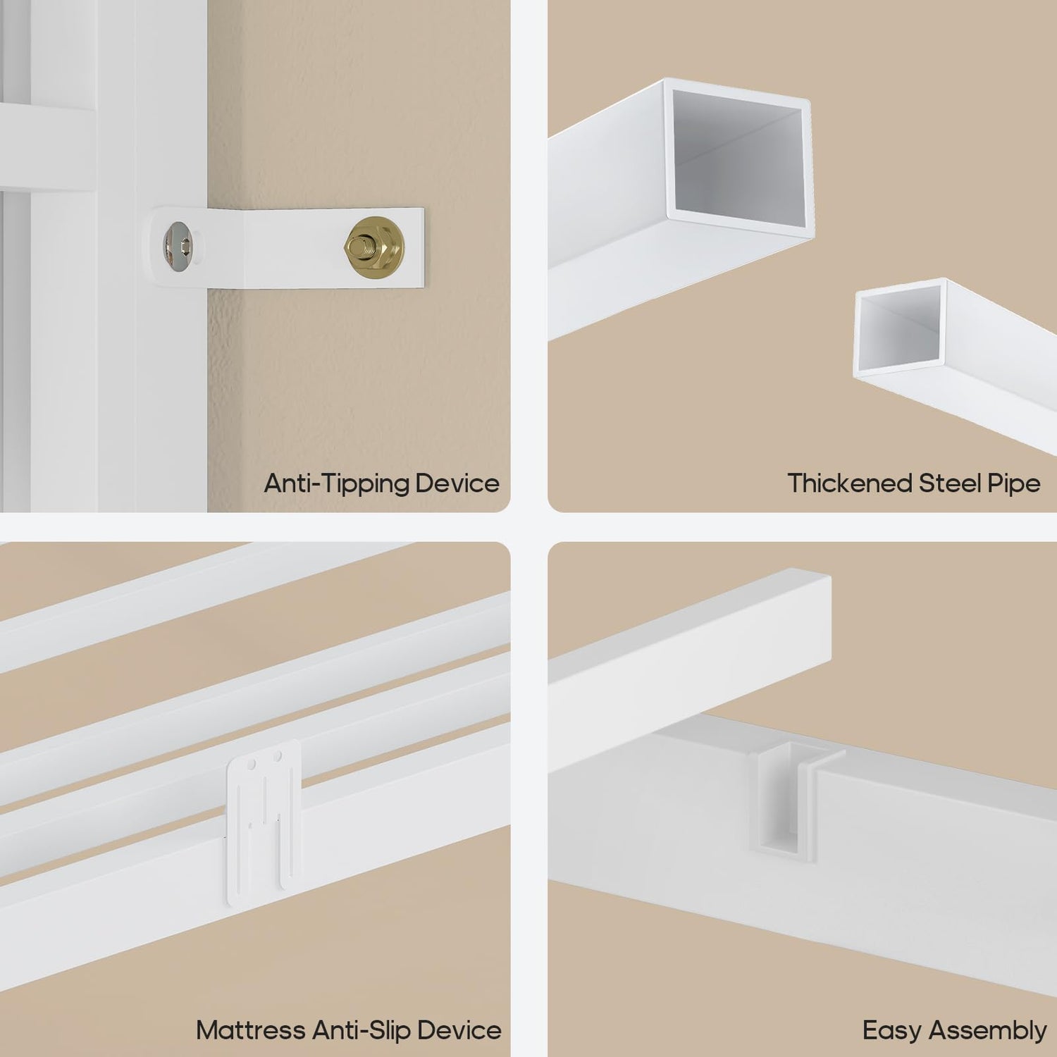 - 【Safe & Stable & Comfortable】The twin bunk bed is made of high-quality thickened steel, which is sturdy and stable. The anti-tip devices can firmly fix the bed to the wall, making it safer and more stable. The upper bunk has safety rails around the perimeter to ensure worry-free sleep. In addition, the inclined ladder and soft foam pads make it easier and more comfortable for kids to climb