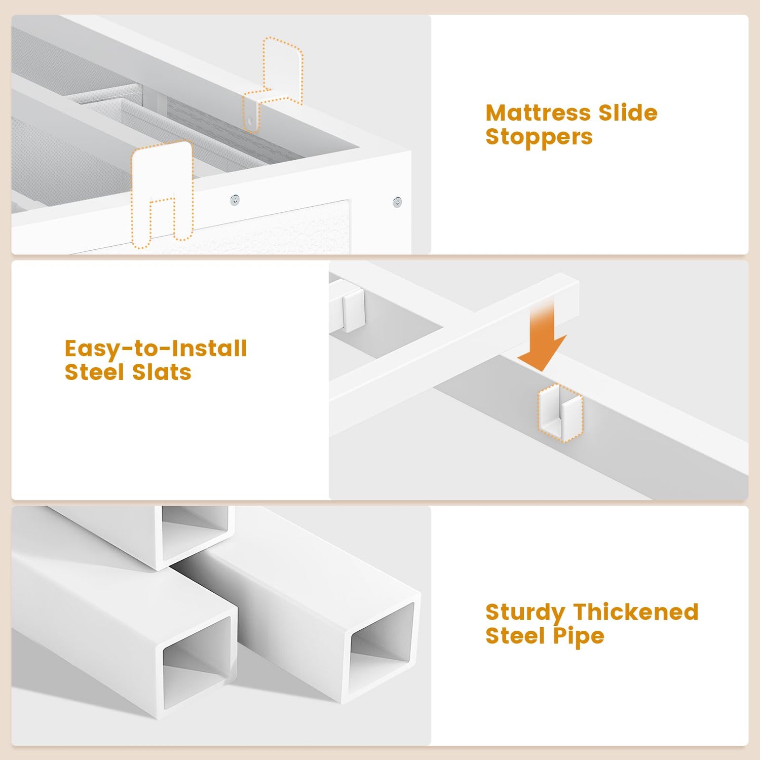 - 【Charging Station within Easy Reach】The twin bed frame comes with a power strip including 2 AC outlets and 2 USB ports, allowing you to easily power your phone, lamp, tablet, and other electronic devices while in bed