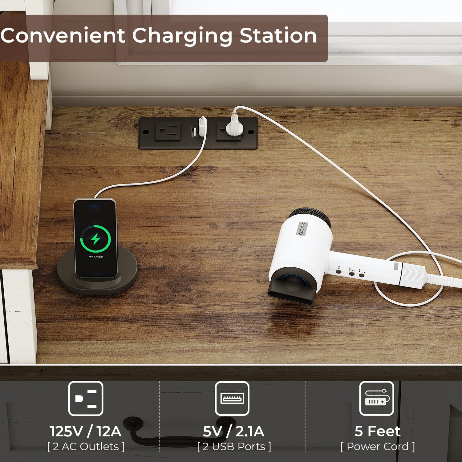- 【Equipped with Power Strip】The right desktop of the vanity table is equipped with a standard power strip that includes 2 AC outlets and 2 USB ports, making it easy to connect a hair dryer or curling iron, as well as charge cell phones, tablets, or other electronic devices.