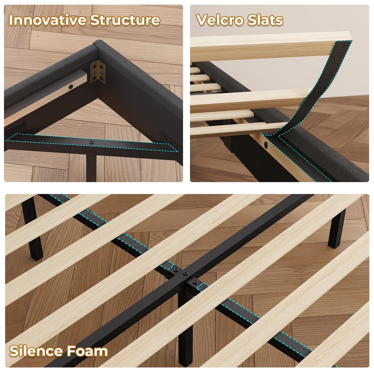 - 【Strong, Stable & Easy Setup】Made of solid steel and quality MDF, this platform bed frame is strong & stable for long-term use. Sturdy wooden slats are fixed by sound-absorbing vecro and quick-lock system. All parts and tools are labled with number for quick setup. Time & energy saver!