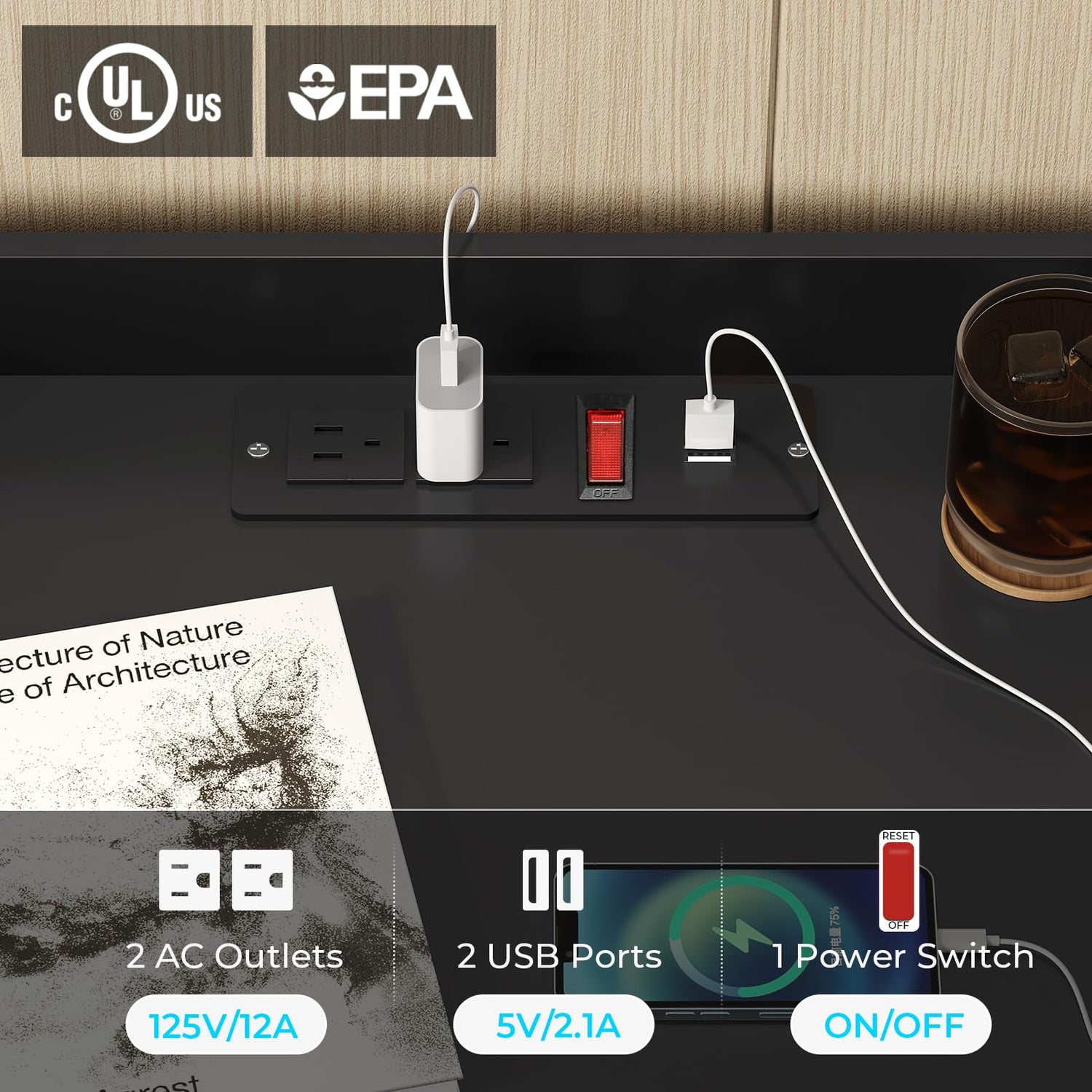 - 【Convenient Power Strip】The top of the nightstand has a built-in power strip that includes 2 USB ports and 2 standard outlets within reach when you're sitting on your bed or couch, making charging so convenient. In addition, a red switch on the power strip improves safety.