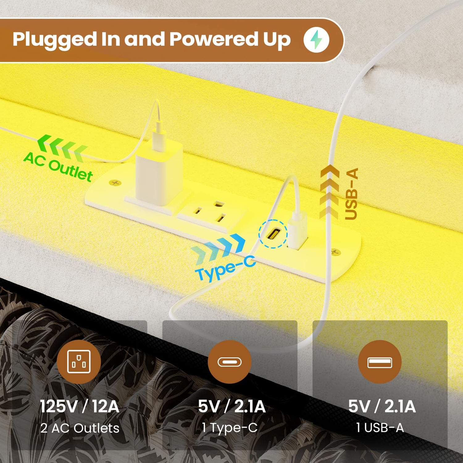 - Plugged In and Powered Up: In a world where gadgets are queen, our velvet upholstered bed frame comes with a power outlet integrated into the headboard shelf. Now your little ones can charge their devices, plug in a night lamp, or keep favorite tech handy without leaving the comfort of bed