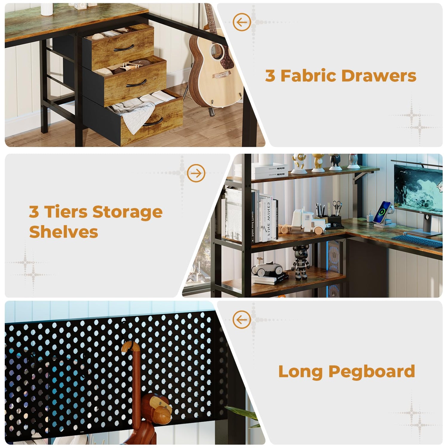 BTHFST Loft Bed Twin Size with L-Shape Desk & RGB LED Lights & Charging Station, Twin Bunk Bed with Fabric Drawers & Shlves, 13.4'' H Safety Guardrail, Noise Free, No Box Spring Needed