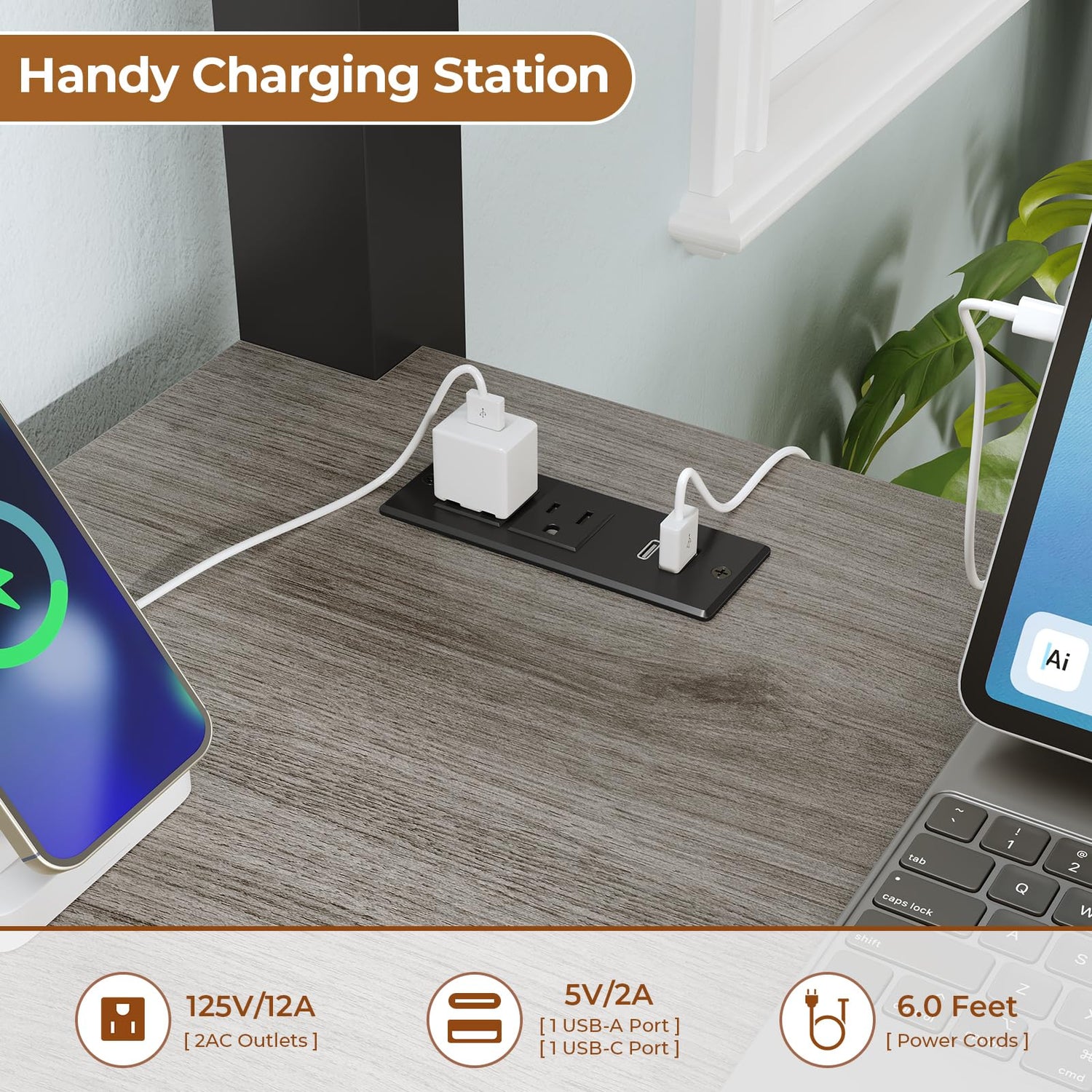 - Desk Bulit-in Charging Station: Twin size loft bed frame with desk features 2 power outlet & 1 usb ports & 1 type-c ports, offering convenient charging for your phone, gaming equipment, computer and other electrical devices.