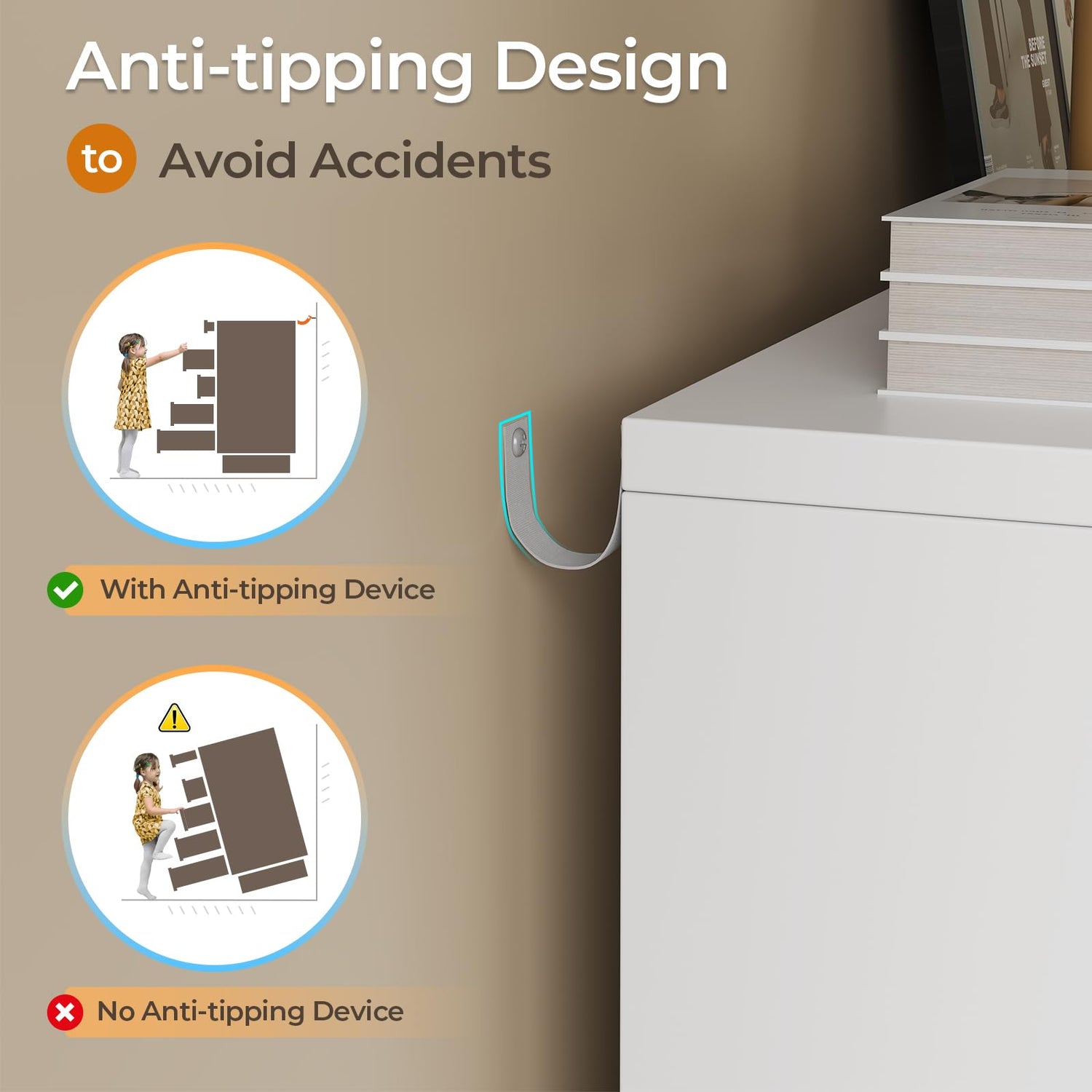 - 【Sturdy & Stable】The chest of drawers is made of high-quality engineered wood, making it sturdy and durable. The tray and each drawer feature smooth metal slides for easy push and pull. In addition, the bedroom dresser is equipped with an anti-tip device for enhanced safety.