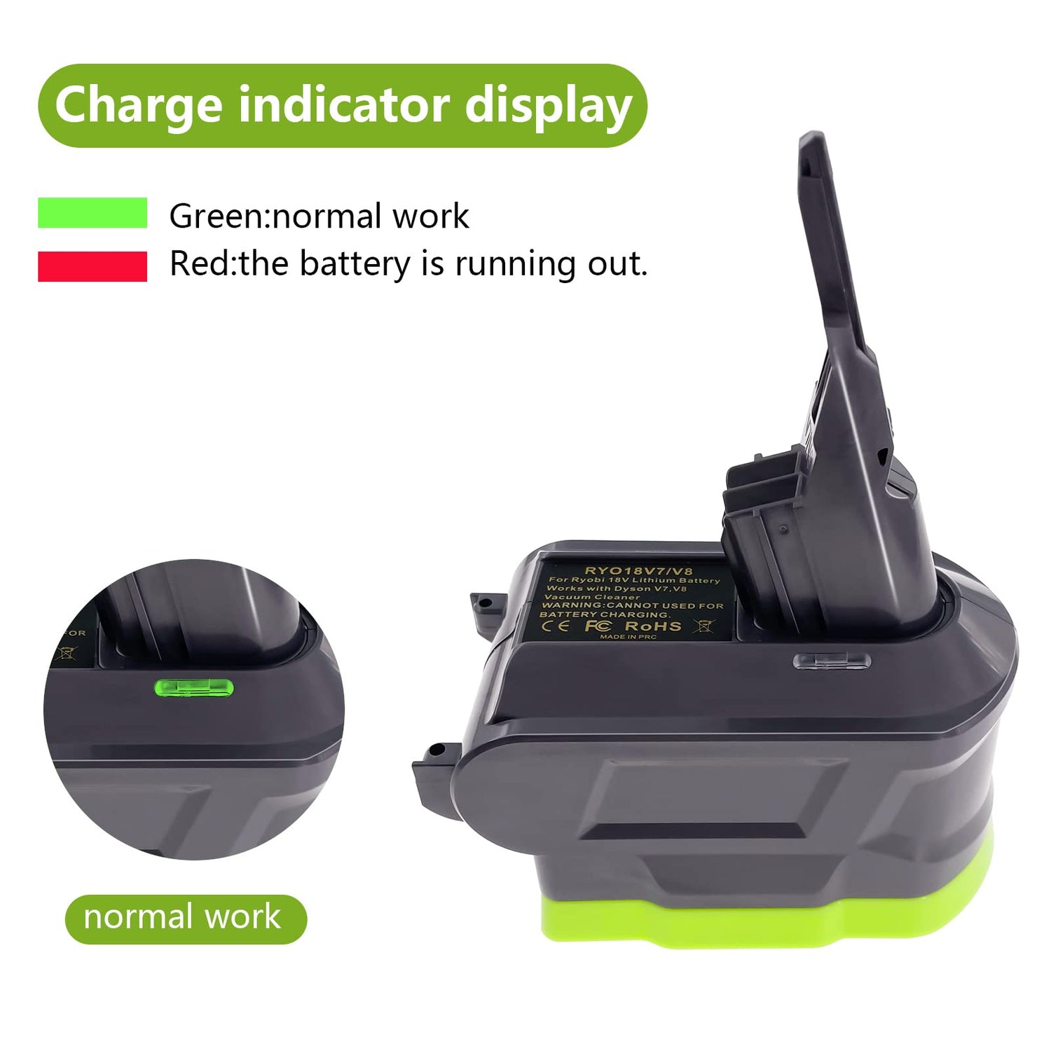 - 🚀【Fit well for Ryobi 18V battery】Compatible with Ryobi 18V High Capacity Battery, such as P108, P192, P193, P194, P122 , PBP004, PBP005, PBP007 ect. Because of the high power for Dyson vacuum, it's recommended to use the original 4A and above batteries.