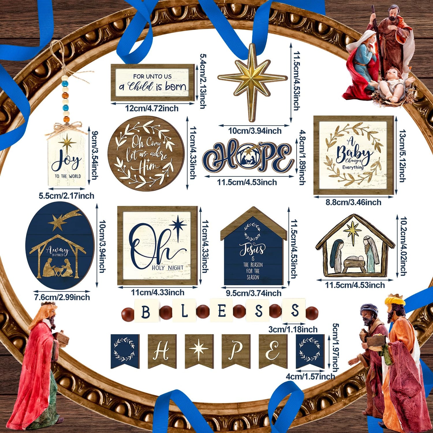 - Ideal Tiered Tray Decors Set: you will receive 17 pieces of Christmas Jesus themed layered tray decorations, Jesus manger wooden decorations are lovely and exquisite, various styles of wooden sign decorations and rich quantities are enough to meet your Christmas decoration needs, suitable for decorating your stacked trays; Please note that the tray is not included