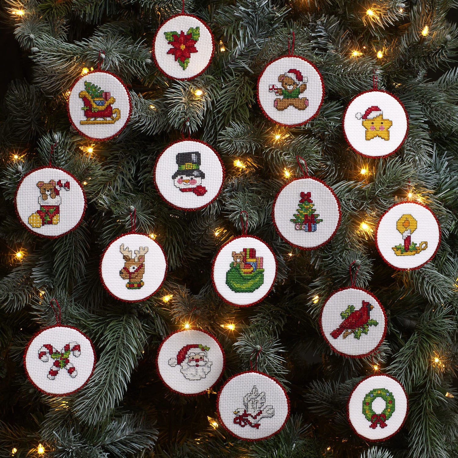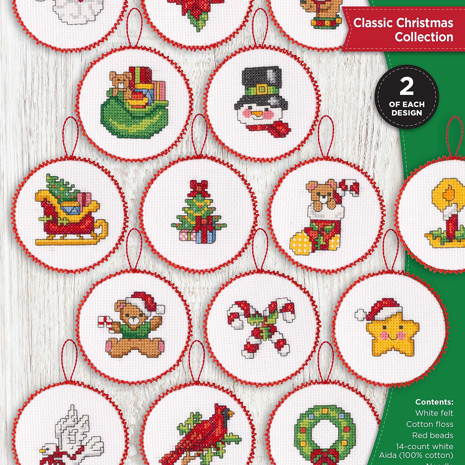 Bucilla Cross-Stitch 14 Piece Ornament Making Kit, Classic Christmas Collection, Perfect for DIY Arts and Crafts, 89454E