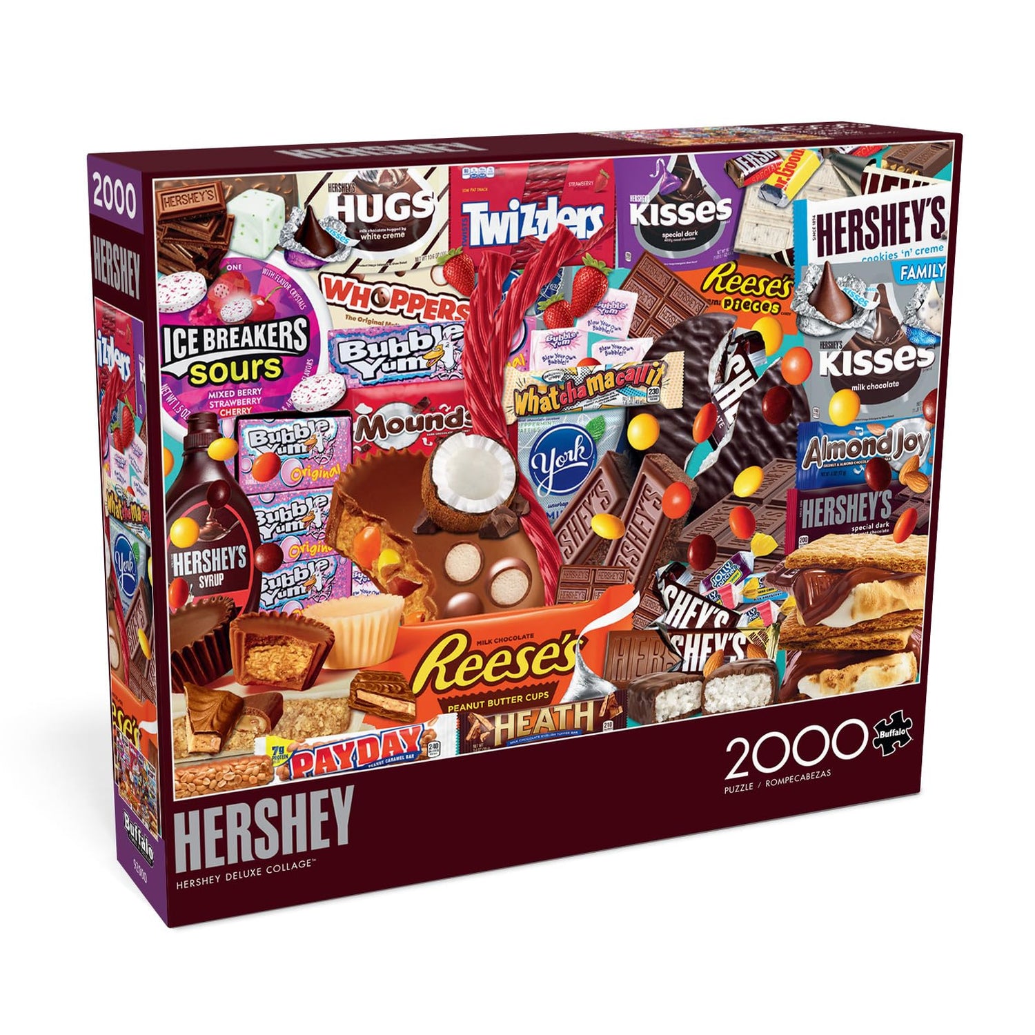 Details: This 2000-piece jigsaw puzzle by Buffalo Games is a collage based on the beloved confection brands from The Hershey Company! This image features a delicious collage of many well-known Hershey brands, including TWIZZLERS candy, HERSHEY’S chocolate bars, REESE’S peanut butter cups, HERSHEY’S KISSES candies, and so much more! Every Buffalo Games jigsaw puzzle is manufactured from recycled puzzle board. A precision cutting technique guarantees that every piece will fit soundly with the company's signature Perfect Snap™. A bonus puzzle poster is also included so that you have a handy reference of what the completed puzzle should look like while you put yours together.
