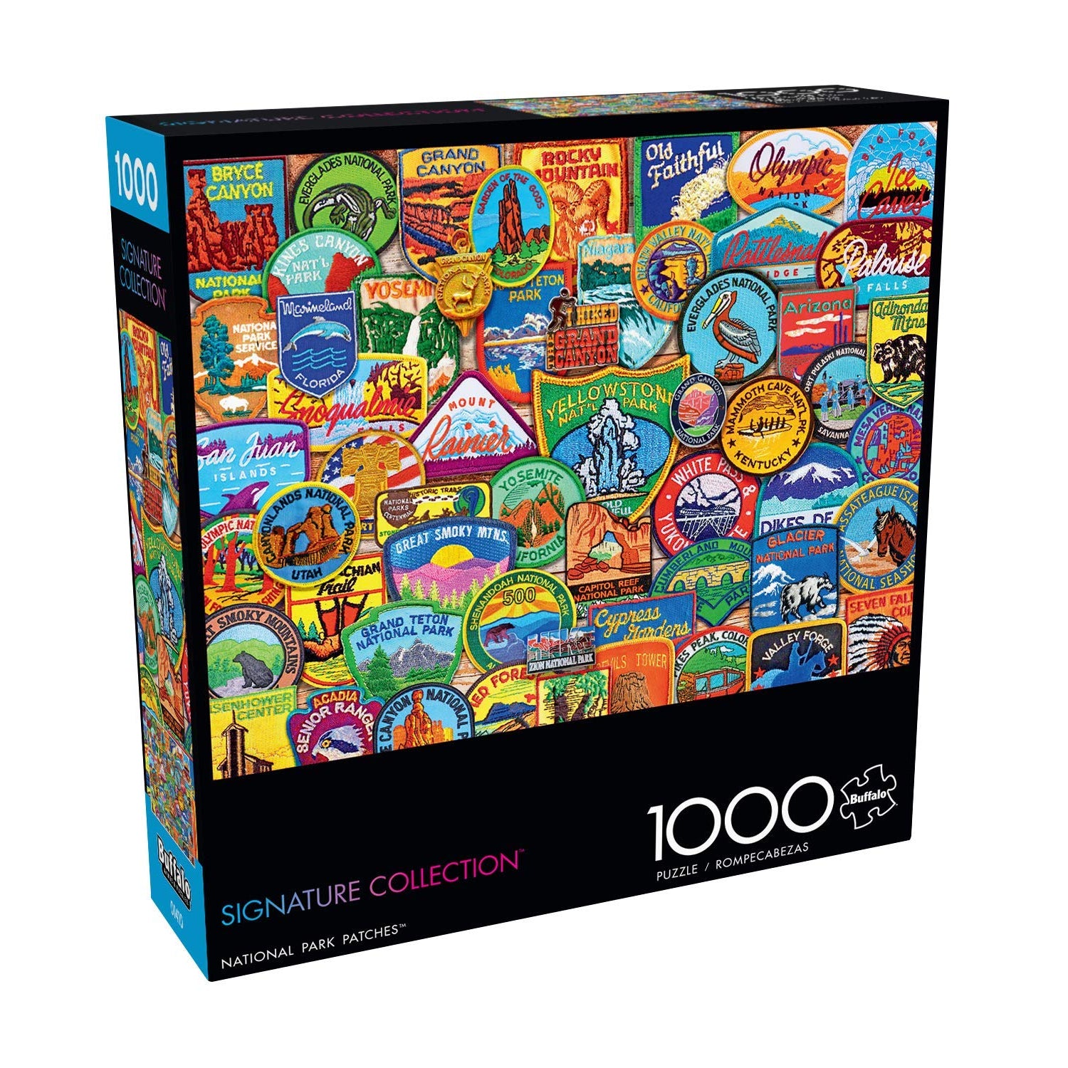 Details: Take a trip across the USA in this 1000-piece puzzle called National Park Patches that is a part of the Signature Collection by Buffalo Games. This collage of colorful patches features all of the United States’ protected national parks. From Mount Rainier in Washington to the Everglades in Florida, how many of these national treasures have you visited? Every Buffalo Games jigsaw puzzle is manufactured from recycled puzzle board. s signature Perfect Snap™. A bonus puzzle poster is also included so that you have a handy reference of what the completed puzzle should look like while you put yours together.