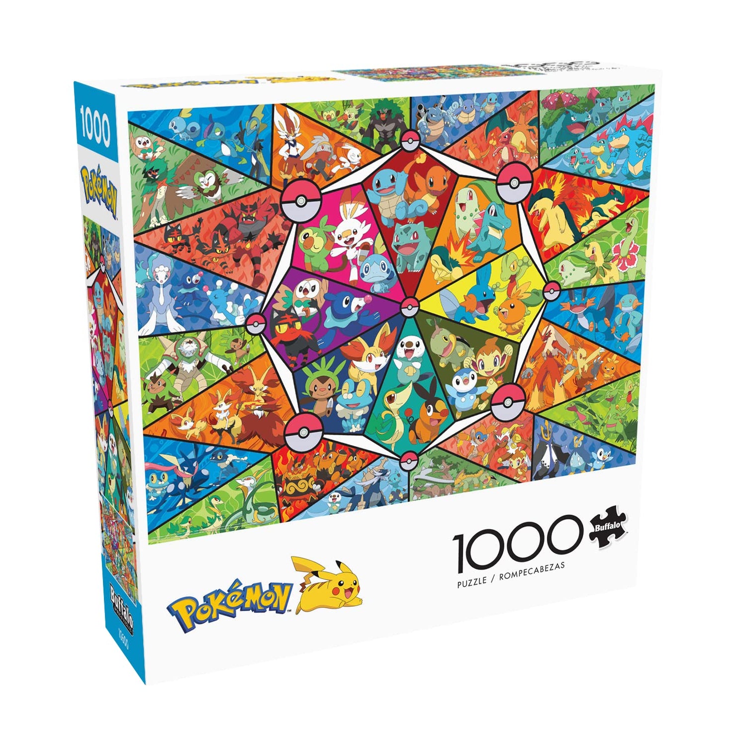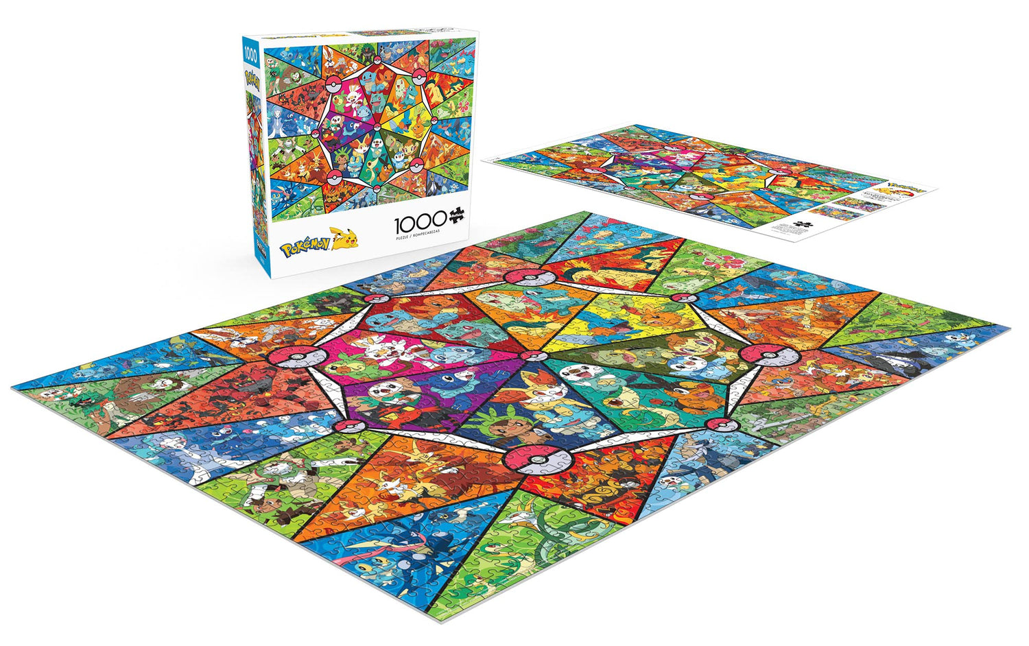 Details: This 1000-piece Pokémon jigsaw puzzle by Buffalo Games features a colorful stained glass artwork of beloved first partner Pokémon, and their complete Evolutions. Can you name them all? Every Buffalo Games jigsaw puzzle is manufactured from recycled puzzle board. A precision cutting technique guarantees that every piece will fit soundly with the company's signature Perfect Snap™. A bonus puzzle poster is also included so that you have a handy reference of what the completed puzzle should look like while you put yours together. ©2022 Pokémon / Nintendo / Creatures / GAME FREAK.