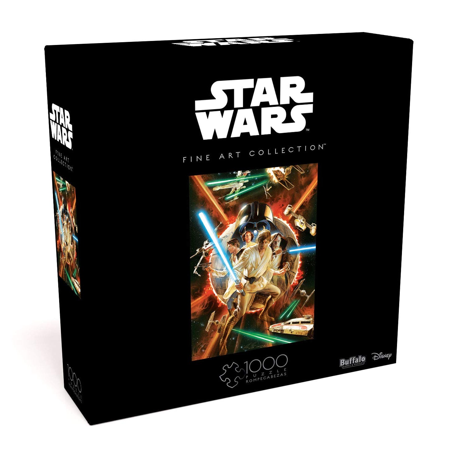 Details: The 1000 Piece Star Wars Fine Art Collection Puzzle Series is created for the Star Wars fan. It features amazing and celebrated Star Wars Fine Art that captures the spirit and moments of all your favorite characters. This jigsaw puzzle features artwork from a special re-released issue of the Star Wars #1 Comic Book. This rare cover variant has Luke Skywalker, Han Solo, Princess Leia, and Obi-Wan Kenobi in the forefront with Darth Vader’s helmet looming behind them. They are surrounded by a space battle between X-wings, Y-wings and TIE Fighters. Each image has been carefully selected to create a satisfying puzzle experience - right down to the last piece! Every Buffalo Games jigsaw puzzle is manufactured using premium quality 100% recycled paperboard. s signature Perfect Snap™. A bonus puzzle poster is also included so that you have a handy reference of what the completed puzzle should look like while you put yours together.