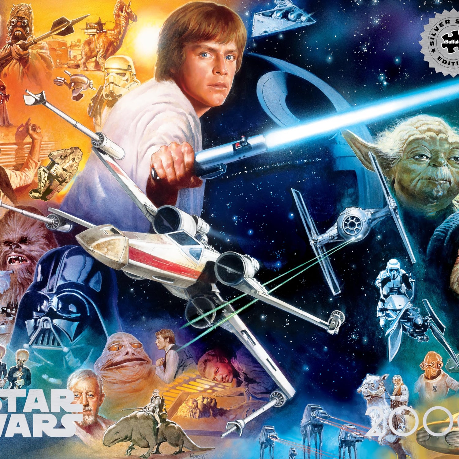 Details: “The Force Is Strong With This One” is a 2000-piece Star Wars™ Silver Select Puzzle and is created for the Star Wars fan. Luke Skywalker, Darth Vader, Princess Leia, Han Solo, Yoda, Obi-Wan Kenobi, the Emperor and more are shown in this spectacular collage of galactic proportions. The Silver Select puzzles are curated and timeless images from The Walt Disney Company, Lucasfilm, and more. They are packaged in a giftable box with silver foil accents, use premium recycled puzzle board, and include a full-color diagram. Every Buffalo Games jigsaw puzzle is manufactured from recycled puzzle board. A precision cutting technique guarantees that every piece will fit soundly with the company's signature Perfect Snap™. A bonus puzzle poster is also included so that you have a handy reference of what the completed puzzle should look like while you put yours together. © & ™ Lucasfilm Ltd.