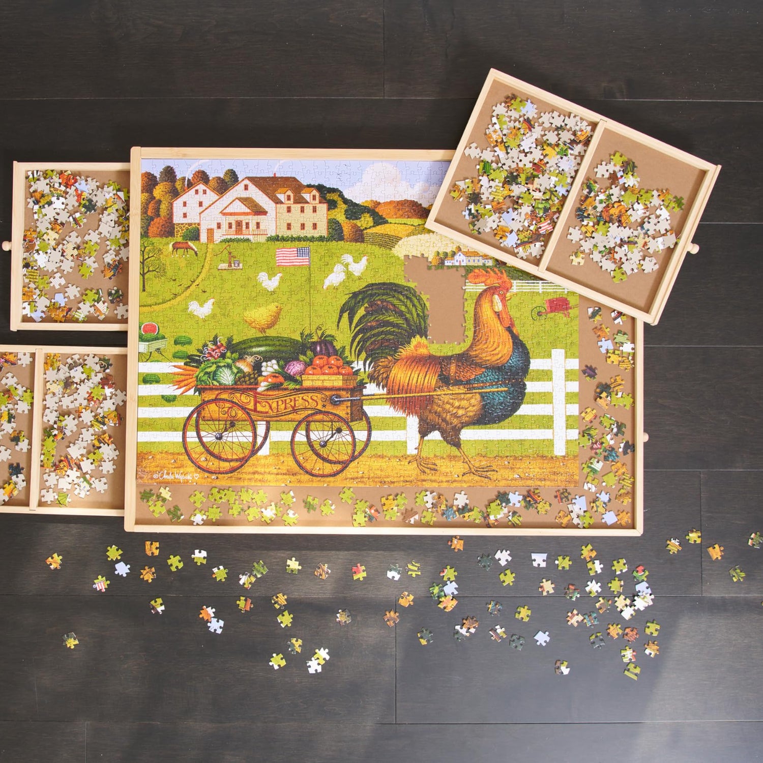 Buffalo Games - Wood Puzzle Table - 1000 Piece Size - Jigsaw Puzzle Accessory - Storage Drawers with Dividers for Pieces - Preassembled in Box Just Add Handles