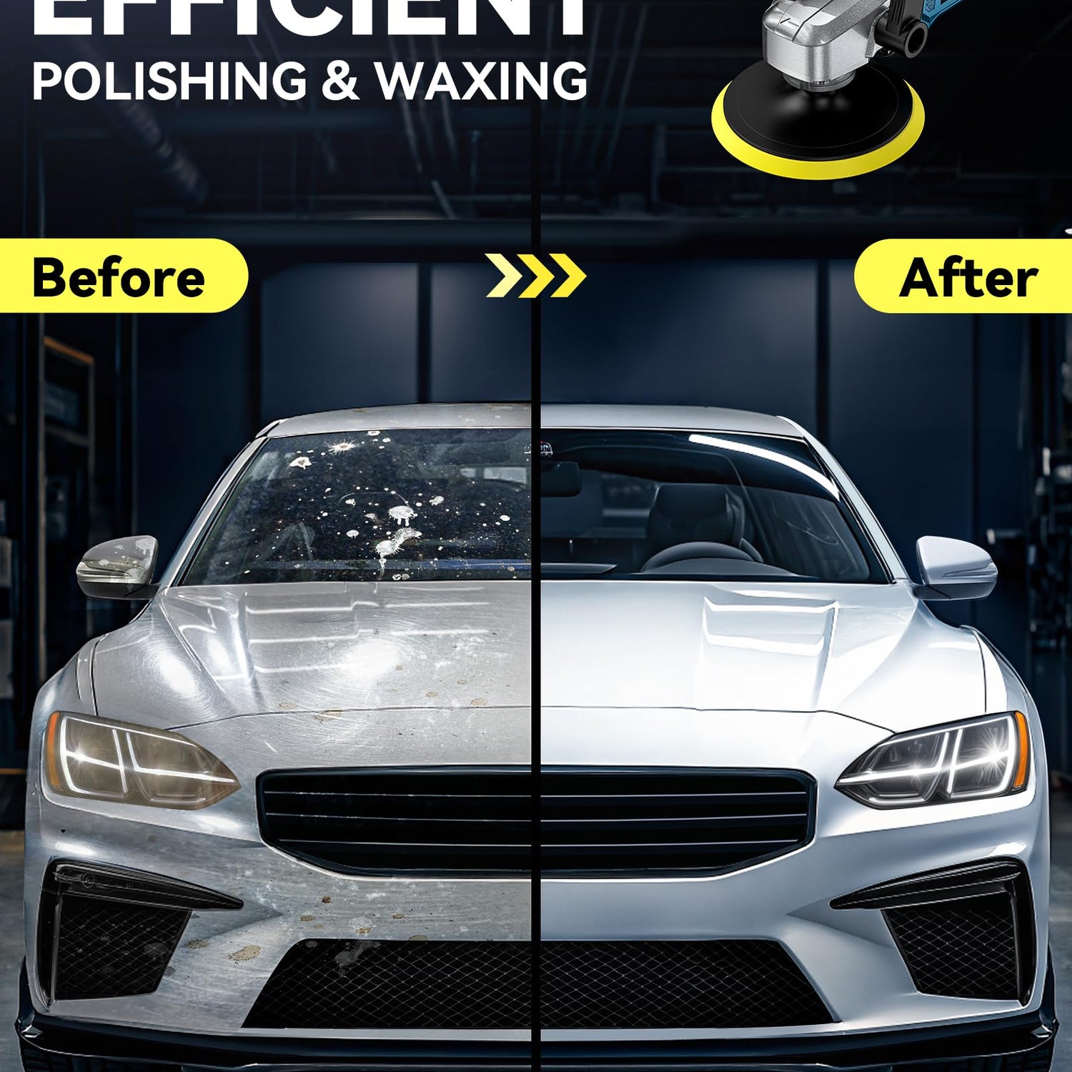 - 【1600W POWER】Our car buffer polisher is equipped with a powerful 1600W motor,which provides you with unparalleled power support,whether it is oxidation layer,scratches or stains on the surface of the body,or restoring the body shine,this car buffers and polishers kit is easy to cope with it,so that your car will have a brand-new shine in a short time