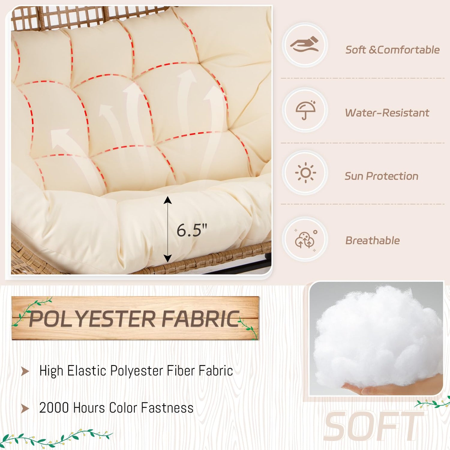 - STYLISH & INVITING: Enhance the visual appeal of any space with this stylish double egg chair with cushions. The sleek curvature and elegant finish create a sophisticated look that perfectly complements your patio, balcony, bedroom, porch, or garden