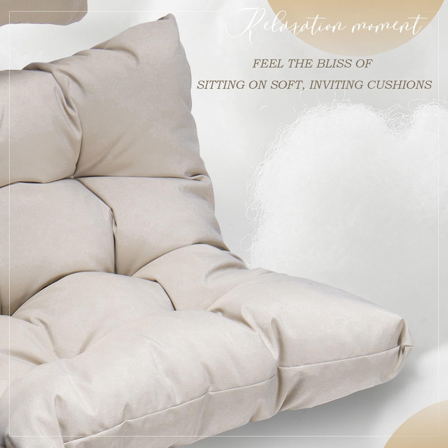 - Sturdy and Cozy: Wrapped in PE wicker, the egg chair features a robust 304 stainless steel hook, hardware, a 4-point support system, and a plush cushion with a headrest, providing a safe and comfortable experience