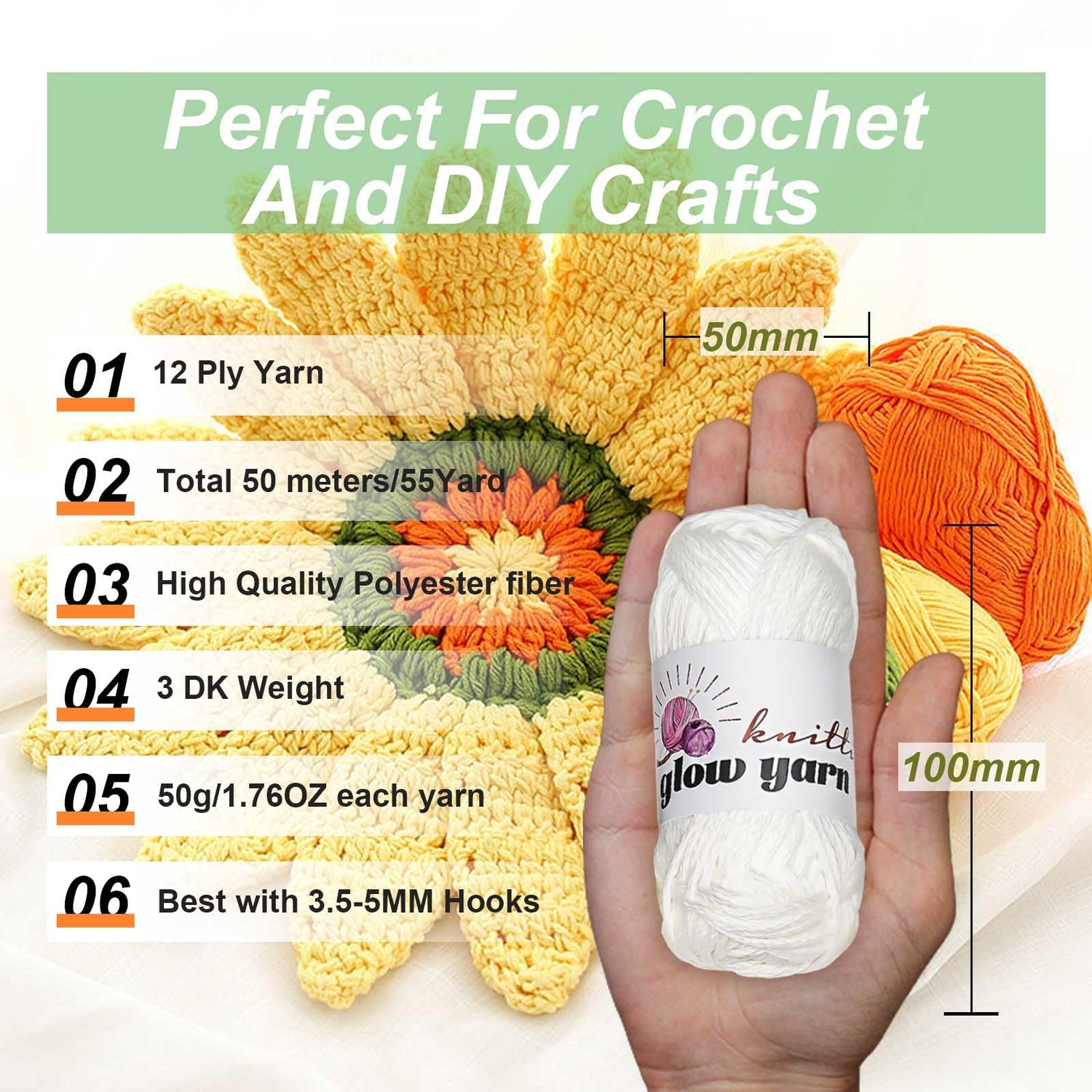 - Glow in the dark: Crochet yarn You need to expose the yarn completely to the sunlight for 15~30 minutes to fully absorb the light, put it in the dark and you will get a surprise.