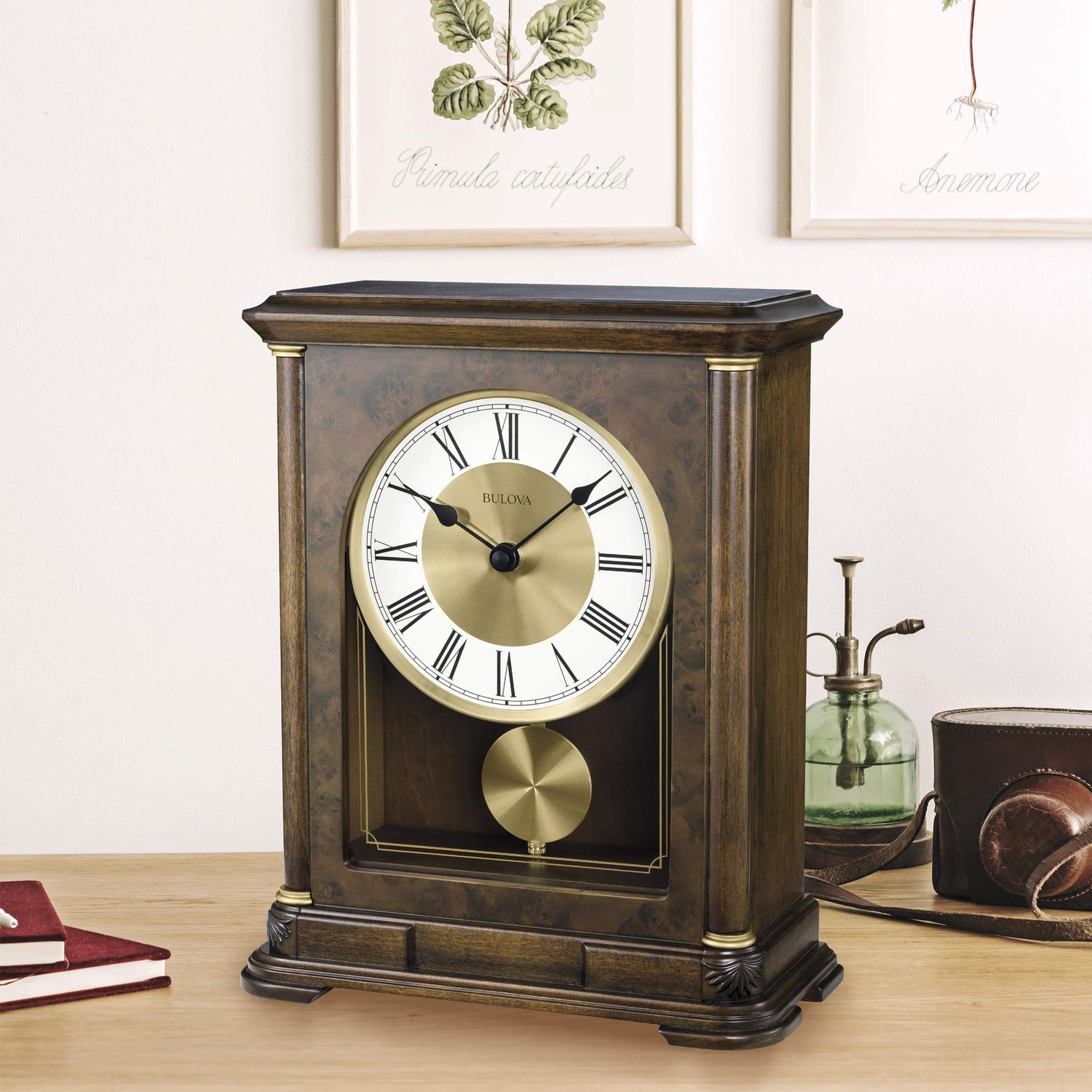 Bulova B1860 Vanderbilt Mantel Clock, Warm Walnut 12.25 x 9 x 4.75