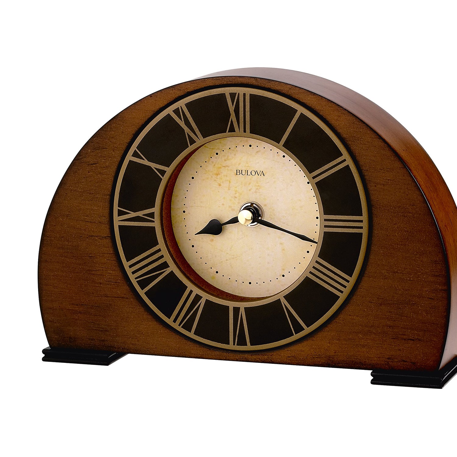 Details: Wood Case, Antique Walnut Finish. Antique-Finish Aluminum Bezel With Roman Numerals. Ivory Parchment Dial. Protective Glass Lens. H: 5.75 W: 8.25 D: 1.75.
