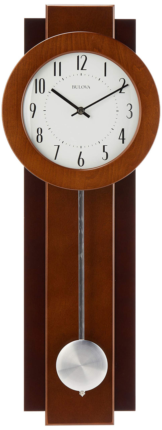 Bulova C3383 Avent Wall Clock | Two-Tone Wooden Case with Slow-Swing Pendulum | Arabic Numerals | Personalization Plate | 23.5" Height