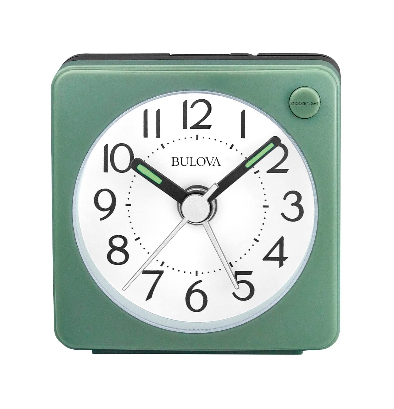 Bulova Clocks B1874, Ultra Small Travel Alarm with Snooze and Light, No Ticking, Verde,Green