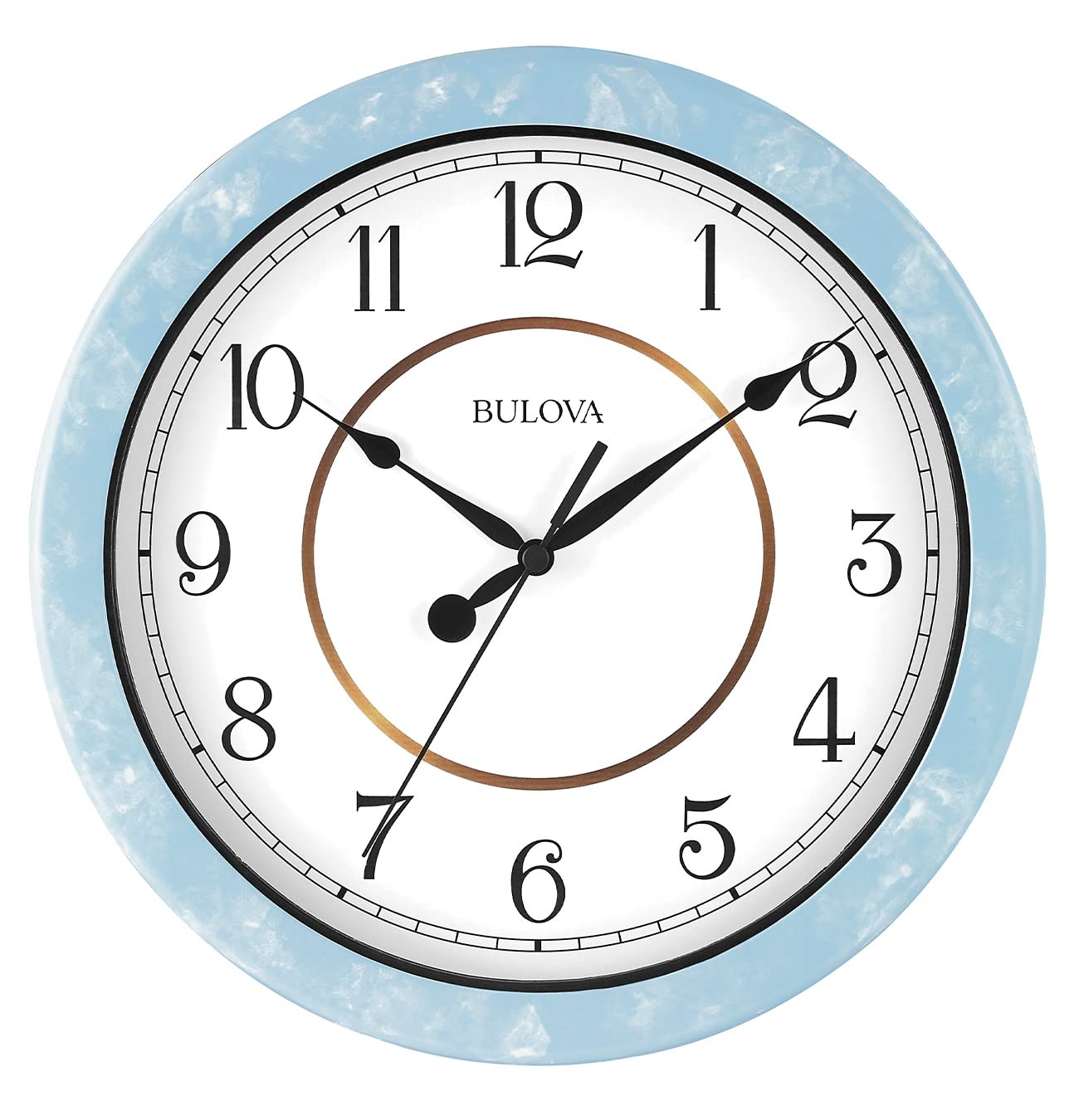 Details: Completely waterproof case, has a 3-point mounting back which allows it to be securely attached to any location. Once mounted the clock case twists on creating a tight water-resistant seal as well as permanent mounting. A silent sweep seconds hand (no ticking) gracefully sweeps around the dial with bold easy-to-read numbers. The sky-blue case has a passing white cumulus cloud effect to give it a casual look. The gasketed glass protective lens keeps moisture out of the dial. This clock is a great choice for Recreational vehicles, boats and anywhere a high-humidity or water-resistant timepiece can be used. Uses (1) AA battery, not included.