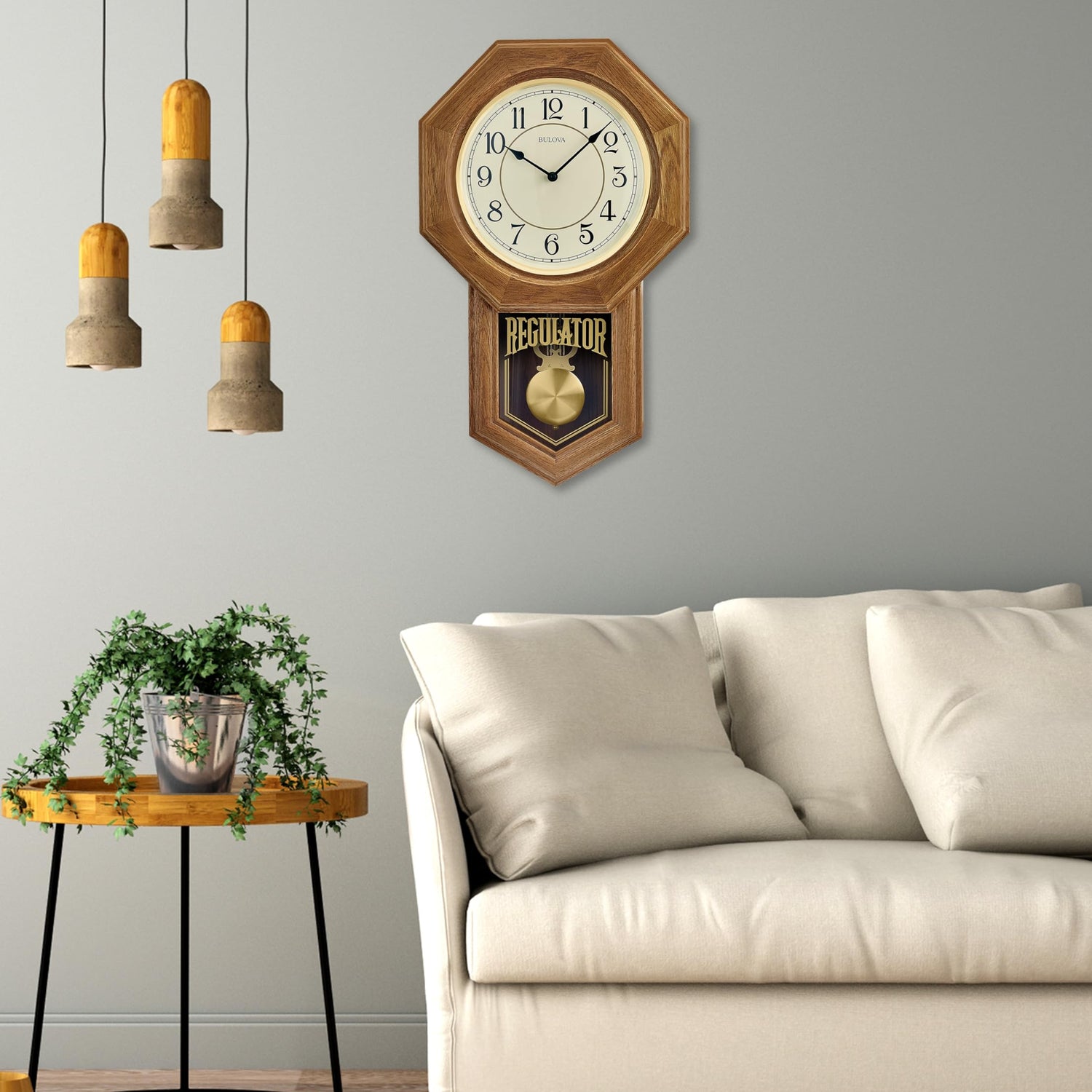 - Elegant Golden Oak Finish: The Bulova Thomaston clock features a sophisticated golden oak finish, with solid ash hardwood and veneers, adding a touch of classic elegance to any room.
