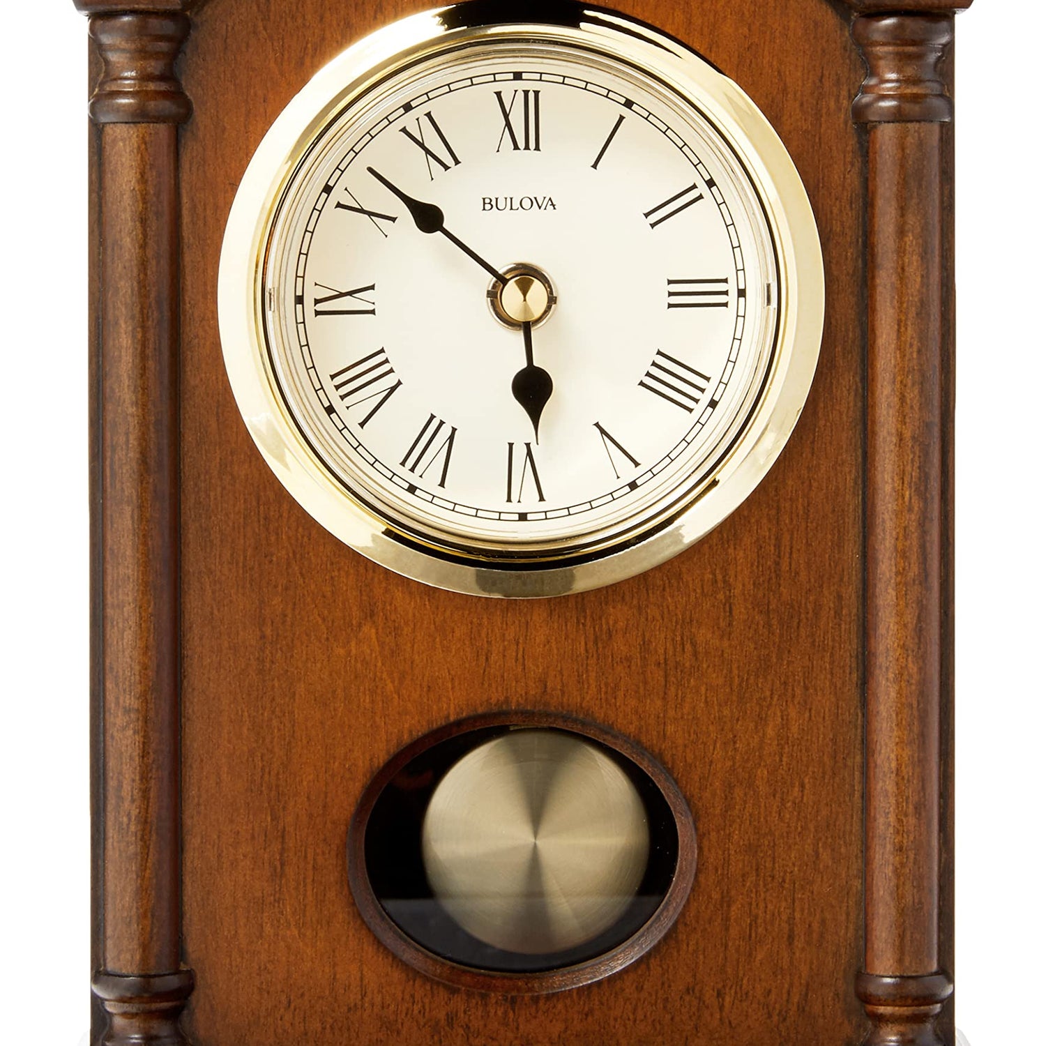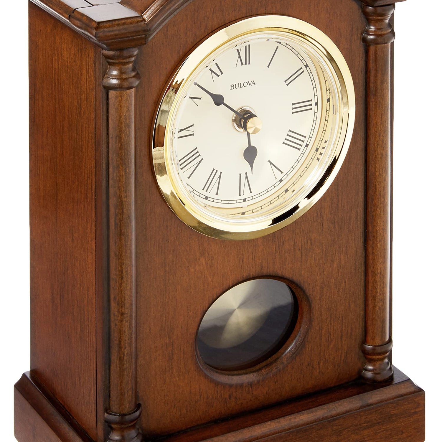 Bulova Dalton Chiming Pendulum Table Clock - Walnut Finish - Gold-Tone Accents