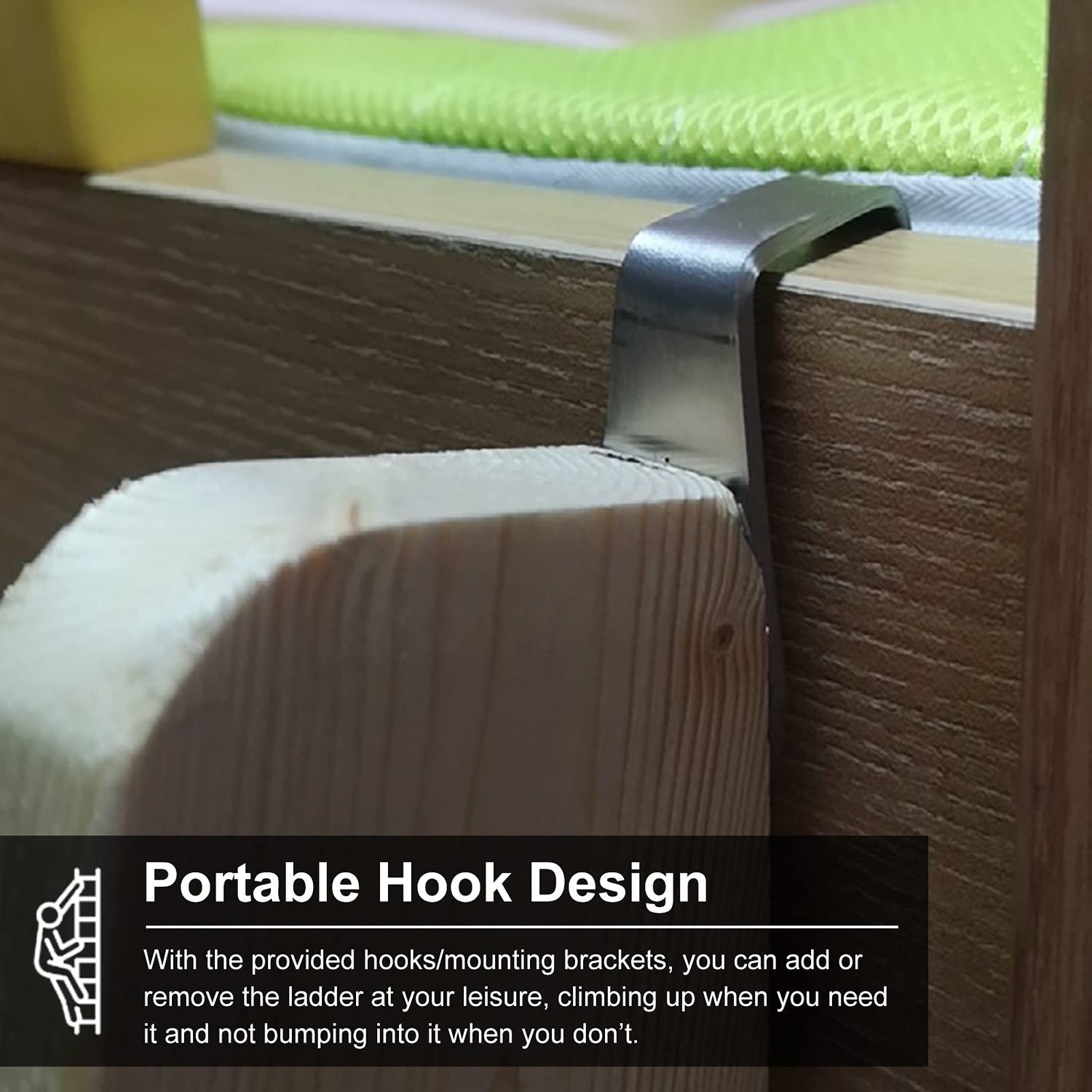 - ✅ 【 Portable Hook Design 】 With the provided hooks/mounting brackets, you can add or remove the ladder at your leisure, climbing up when you need it and not bumping into it when you don’t.