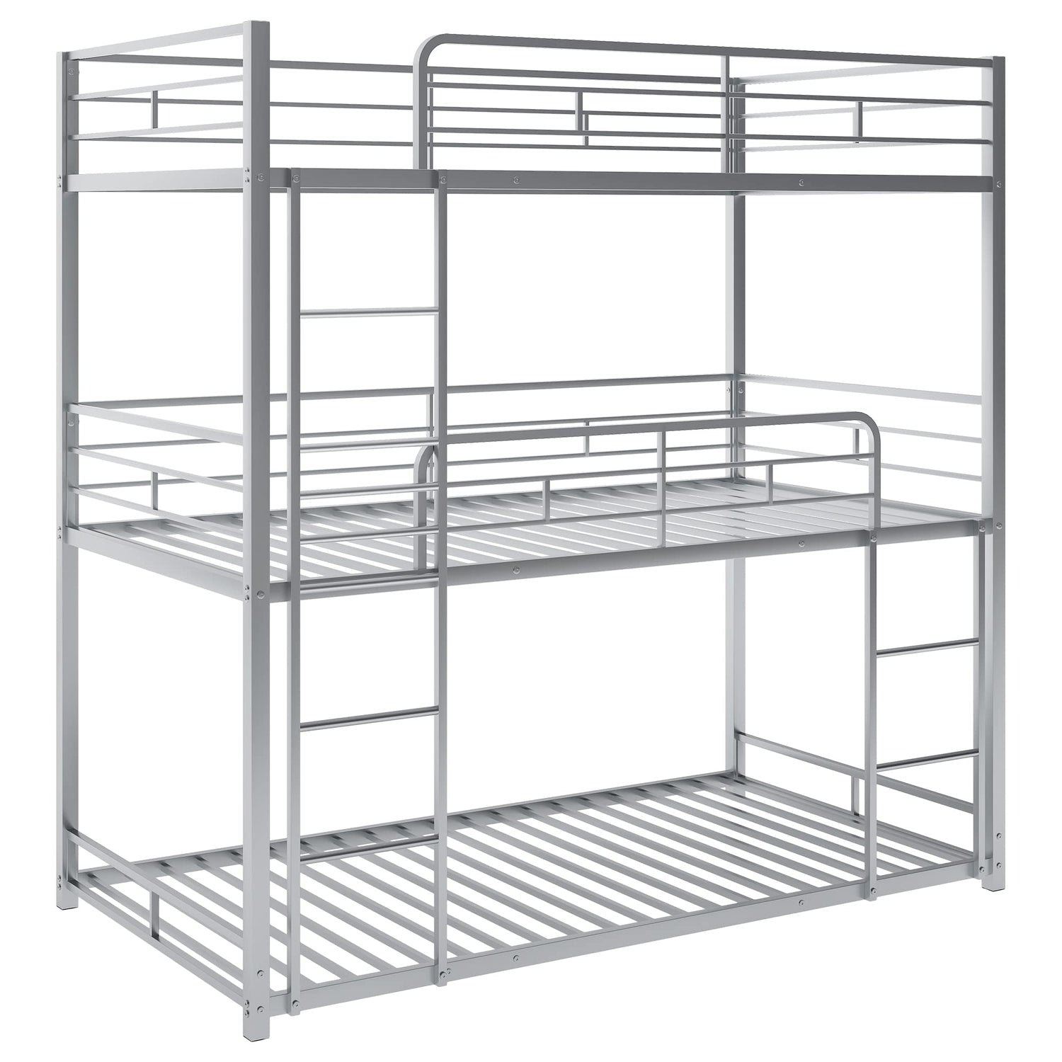 Bunk Beds, Metal Bunk Bed, Triple Bunk Bed for Kids,Teens, Adults, Girls, Boys, Detachable BunkBed Can Be Divided into 3 Twin Beds,No Box Spring Need (Silver)