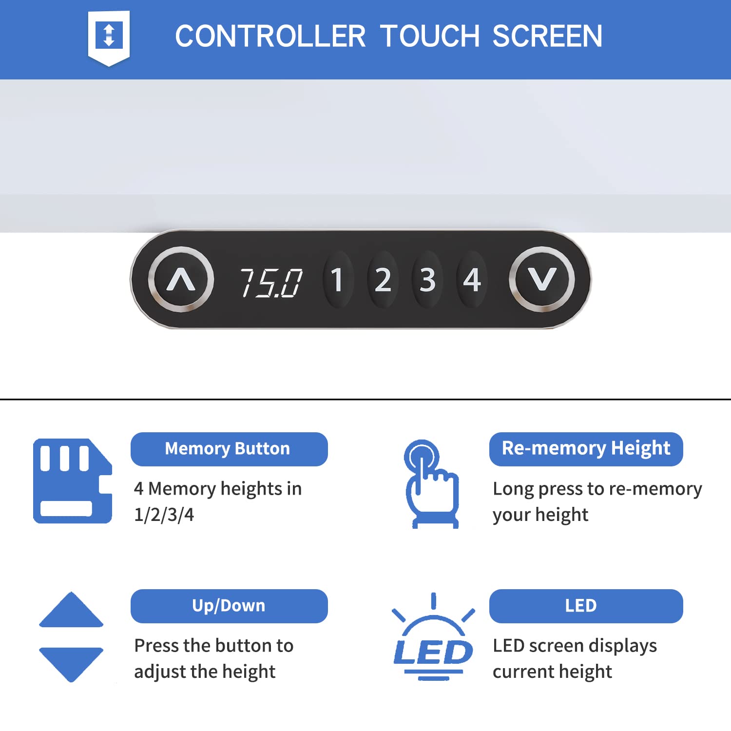 - Anti-Collision Technology & Current Protection Function: The standing desk features anti-collision technology and current protection. The LED screen provides 4 programmable memory modes, automatically locks the height you want, accurately detects obstacles, and automatically drops 2cm/0.78in for obstacles. If any error code appears, you can reset it. Press the up and down keys at the same time for more than five seconds to reset.