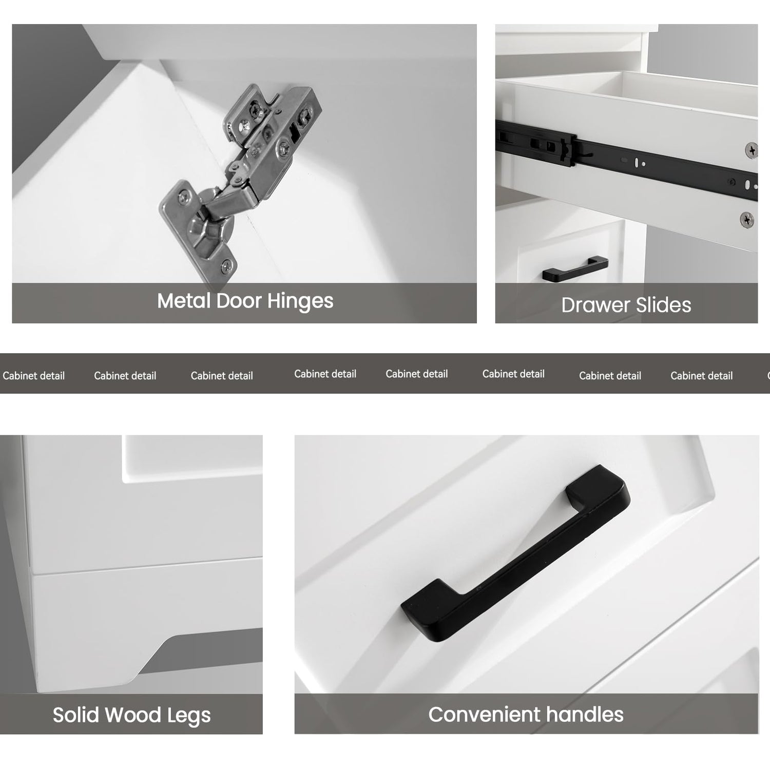 - 【Storage Space】Our bathroom vanity has various storage space. One soft closing door and three full extension drawers, the different structure of storage space can meet your different storage needs, ensuring everything in one place that you can easily reach.