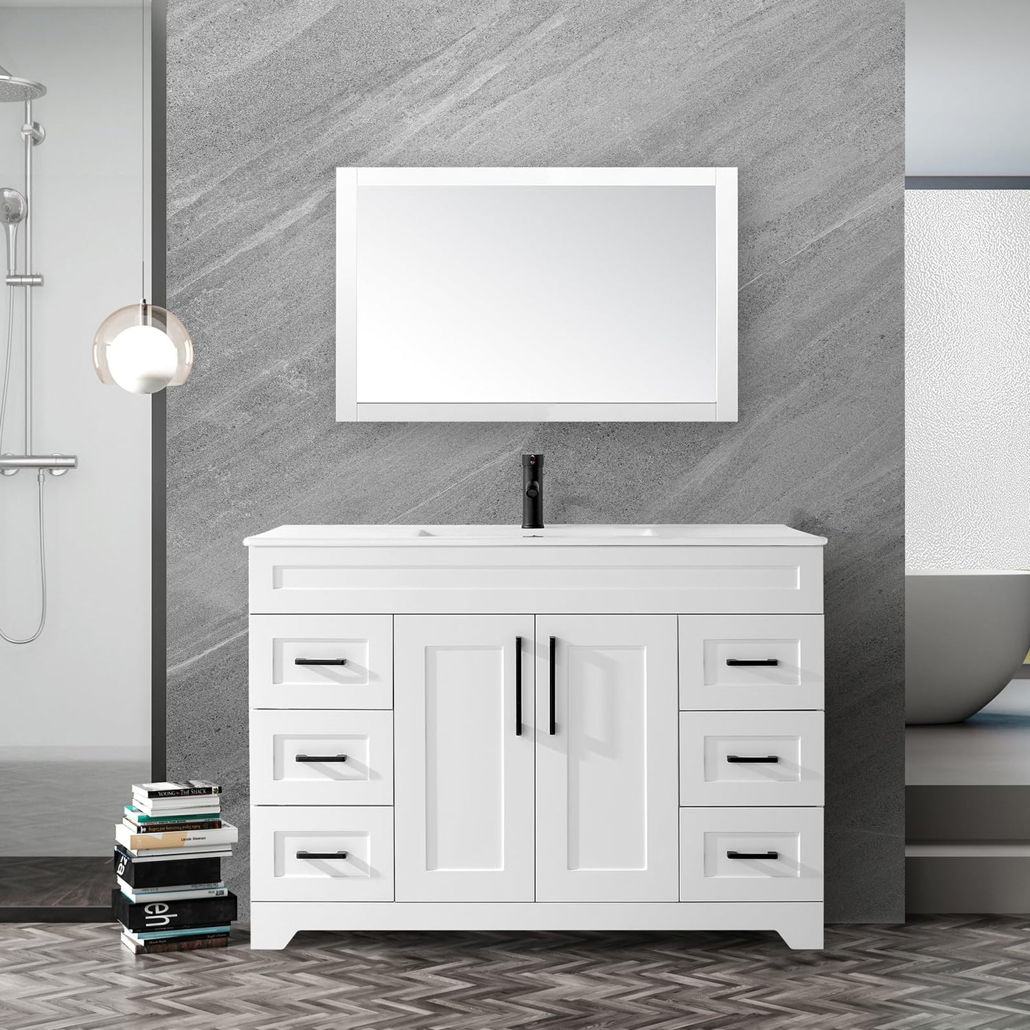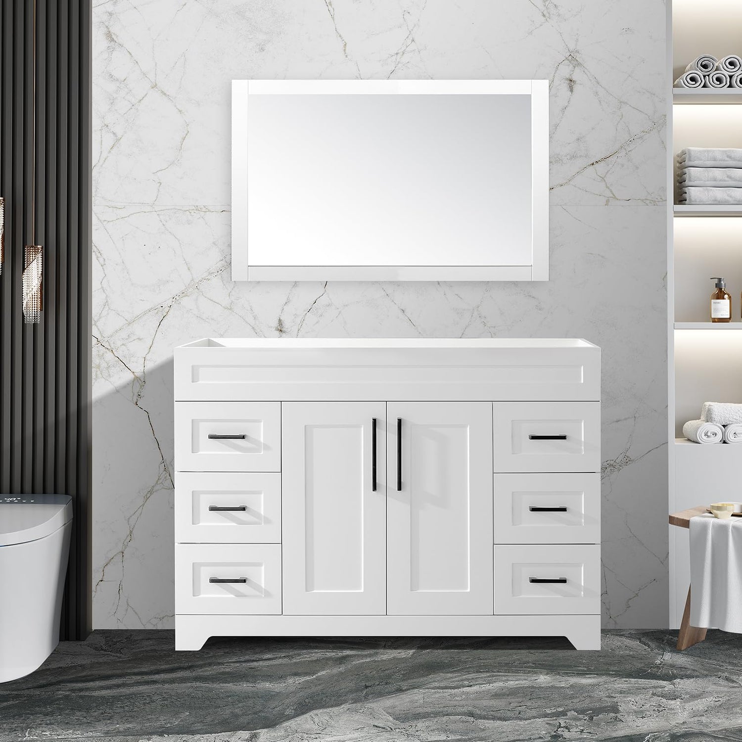 BUPWHEK 48” Bathroom Vanity Cabinet Without Sink, Modern White Bathroom Storage Cabinet with 2 Doors and 6 Drawers