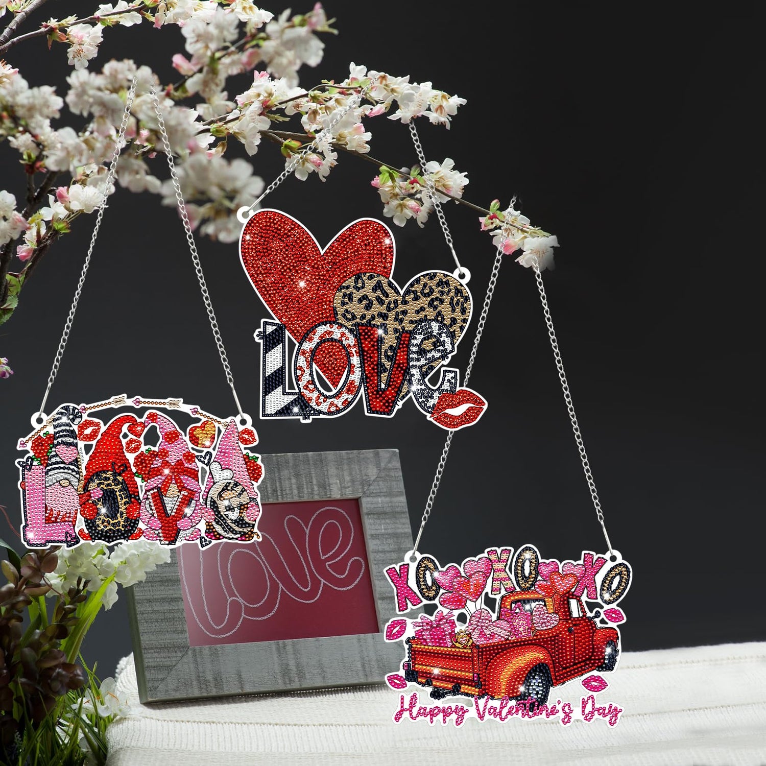 - Package Information: our Valentine's Day diamond painting kit is an exquisite collection that includes 3 charming designs: gnome, birds, and truck; Packaged comprehensively, the pack includes 3 sign boards, and a range of accessories, namely tools, an abundance of diamonds, and chains; The thoughtful collection will meet your DIY needs, adding a thoughtful touch to your home