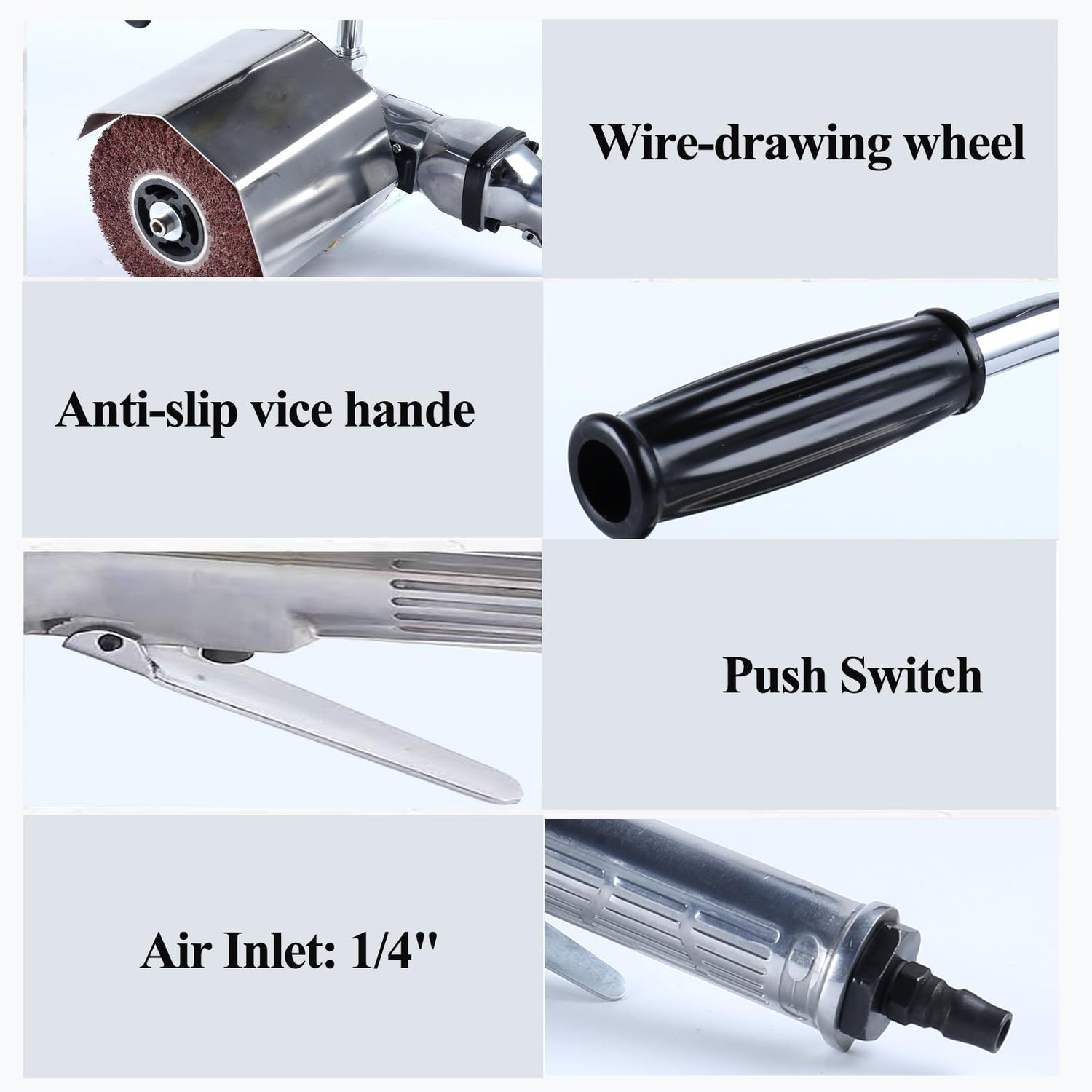 - Sand Tray Size:100mm x 110mm ;Air Pressure:3.5Scfm ;Air Inlet:1/4'';No-load speed:2500r.p.m low Noise : It has a built-in exhaust silencer that does not emit a lot of noise even during efficient operation.